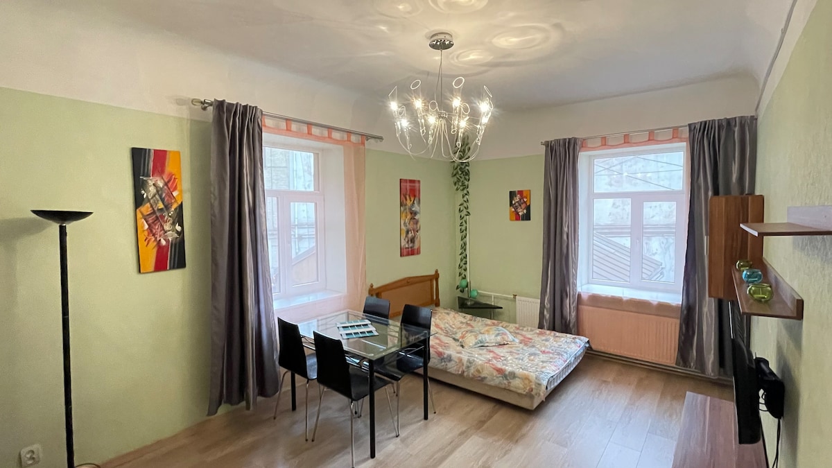 A tiny one-room apartment, conveniently located near the airport, shops and the city center. I do my best to make you feel comfortable: I keep it clean, keep it tidy and try to create a cozy atmosphere. The house is old, but there is a yard and a parking space. Unfortunately, I can't influence some things, but inside you'll find a clean, tidy and comfortable space. Many guests give 5 stars for comfort and cleanliness, and I am always happy to make your stay pleasant!