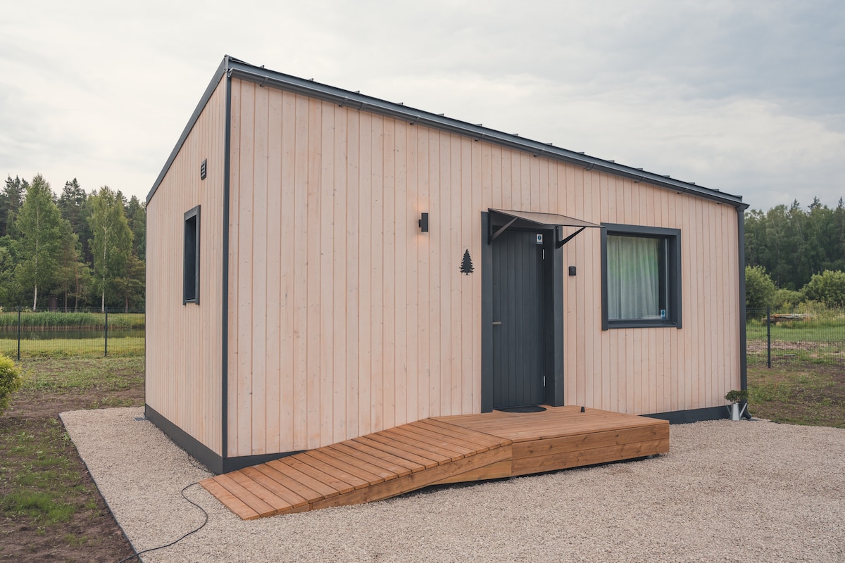 Our new 25m2 River House with a living room and a bedroom is a separate house on a very river bank. It has a separate living room with kitchen, bathroom and bedroom. You will find a sofa with additional sleeping seats in the living room. The house has a wide terrace facing the river, outdoor furniture, grilling amenities and sunbeds. House is equipped with heating system and air conditioning. In this house you will find warm wool blankets, hairdryer, dishes, coffee machine and electric kettle