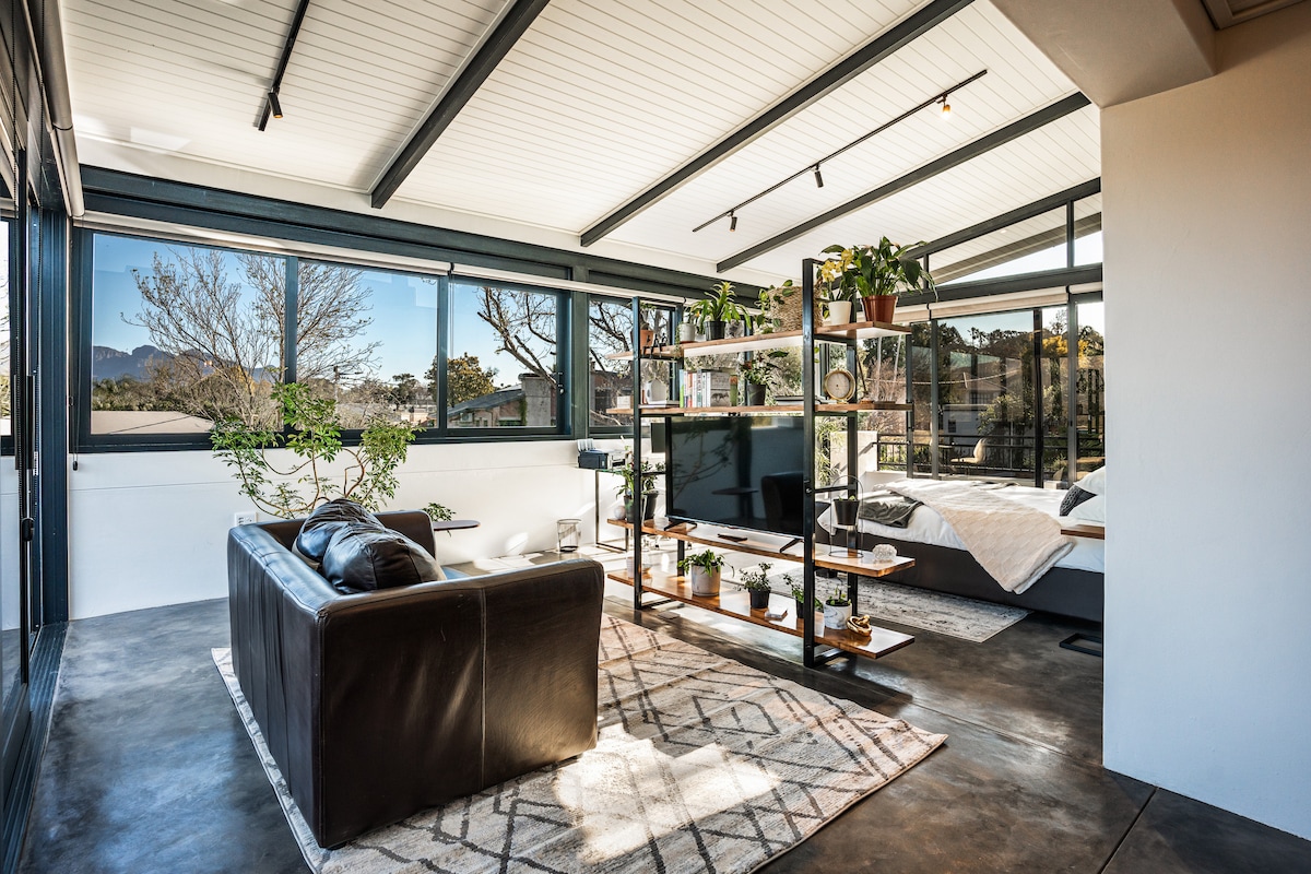 Our free standing stylishly renovated cottage is situated at the back of the property and has it’s own private garden courtyard. Fully equipped modern kitchen, living room, bedroom with skylight, Q-XL bed & en-suite bathroom. The cottage has AC, Wifi, smart TV (Netflix, Prime vid), an alarm and 24 hr patrol vehicle in this beautifull, quiet street of the neighbourhood. We are a young, lively family of 4 and some related sounds might be heard. Easy access to mountain for runs, walks, mtb.