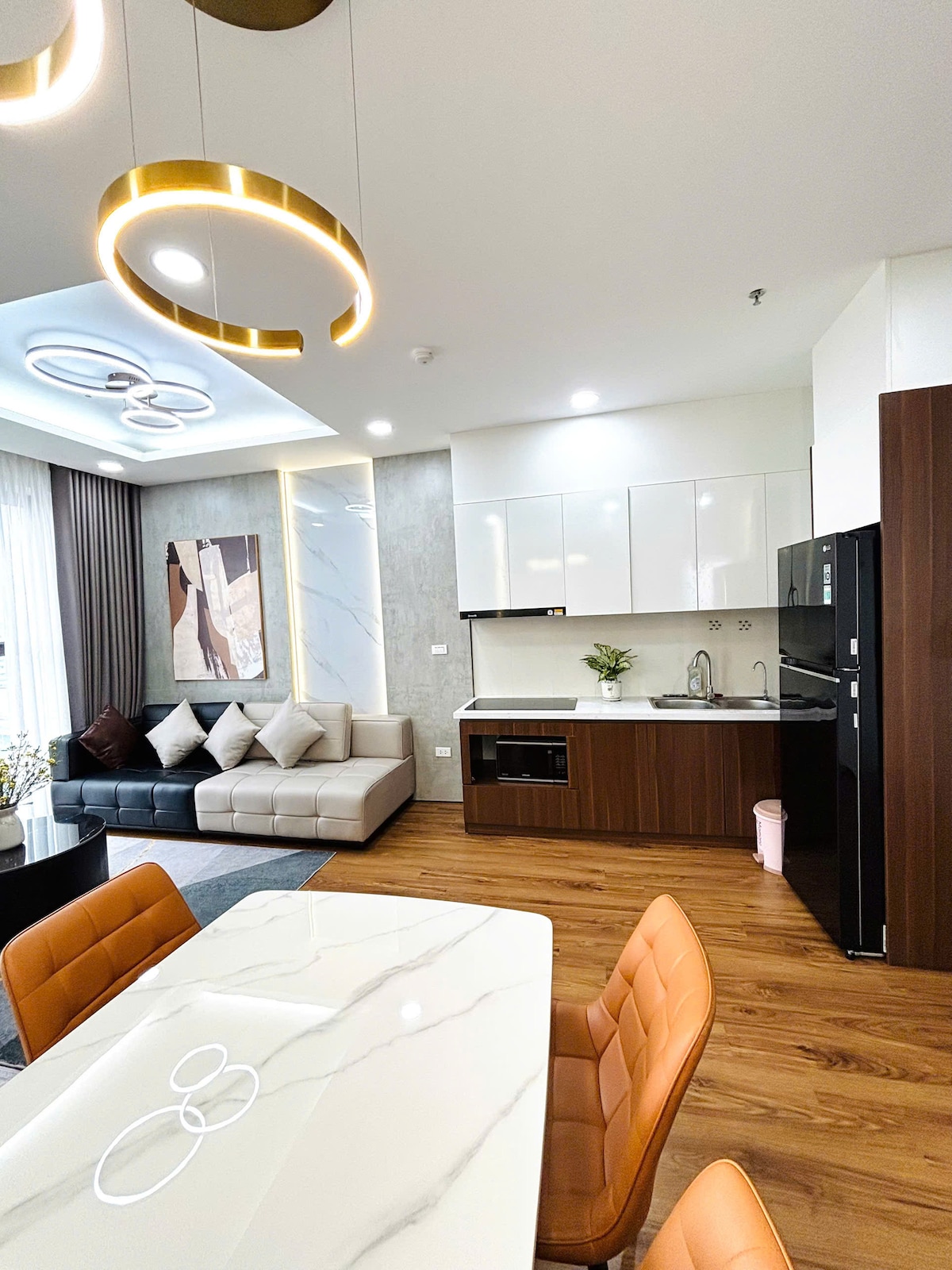 Căn hộ siêu đẹp, đầy đủ tiện nghi tại thành phố Bắc Ninh. 🌼 1 phòng ngủ Master lớn. Đệm 2m2. Tivi kết nối Netflix youtube premium. Vệ sinh trong phòng. Cửa sổ lớn. Tủ quần áo âm trần. Bàn trang điểm 🌼1 phòng ngủ Double. Đệm 2m. Máy chiếu kết nối Netflix youtube premium. Vệ sinh sát liền cửa. 2 Áo choàng tắm. Tủ quần áo âm trần. Bàn làm việc. 🌼 Bếp: bàn ăn, tủ lạnh 2 cánh, bếp điện, lò vi sóng, đầy đủ nồi xoong, chảo, dao thớt, bãi đũa , da vị nấu ăn 🌼 Khách: sofa, bàn trà, ban công thoáng