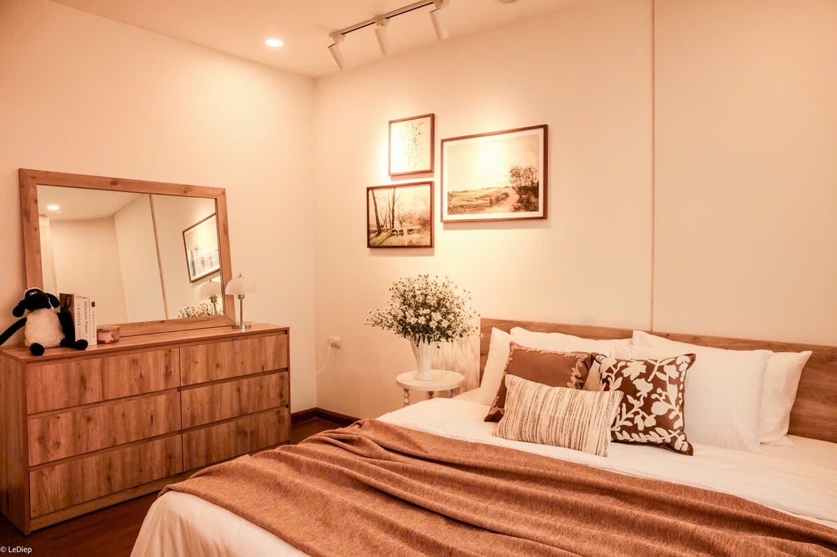 Welcome to our cozy little apartment – a warm 3-bedroom home on the 16th floor of Kosmo Tower. Our family of three splits time between Hanoi and Hoi An, and we only run Airbnb here when we’re in Hoi An. This is truly our home, so you’ll notice some of our personal belongings, like clothes in the wardrobe and neatly stored food in the fridge — we hope that’s okay! This isn’t a typical Airbnb set up purely for renting, but a real, lived-in space that we’re happy to share
