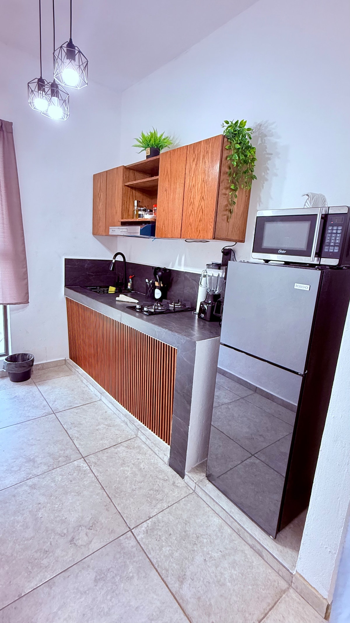 Enjoy a stylish experience at this centrally-located, newly decorated, spacious and modern 'Loft' type place with a kitchenette, refrigerator, breakfast bar, living room, one and a half bathrooms, cable TV, Wi-Fi, air conditioning, bedroom with queen size bed. The upper part is 185 cm high. We are close to downtown, government offices, the boulevard, and convenience stores