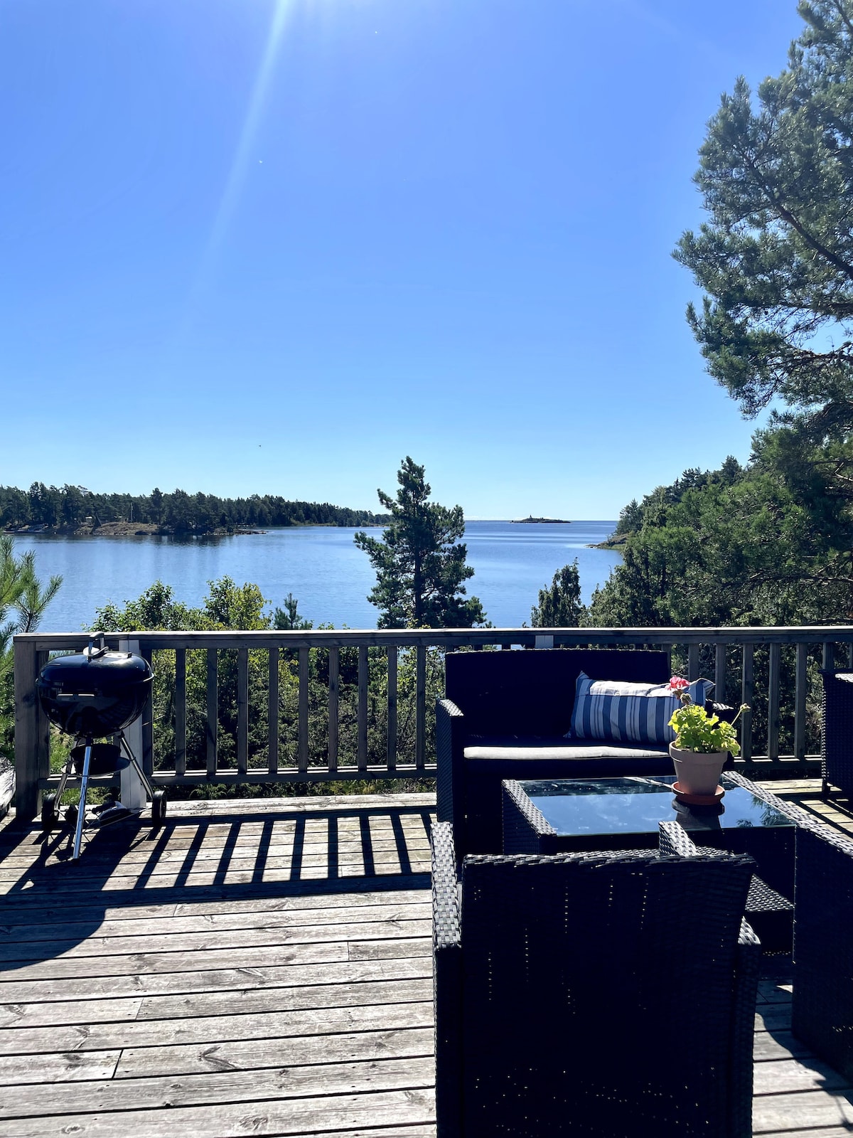 Newly-built cottage right by the sea with a large jetty and a private berth. The dock is made for you to enjoy all day, as there are sun loungers, swimming ladder, outdoor furniture and barbecue. Within walking distance, you can rent kayaks, paddle tennis courts and a spa. The cottage has an open living room and kitchen with stunning views of the sea. Toilet with shower and washing machine. Upstairs, there are 3 bedrooms. One with a double bed and a private balcony, one with 2 single beds that can be put together and one with a 120 cm bed.