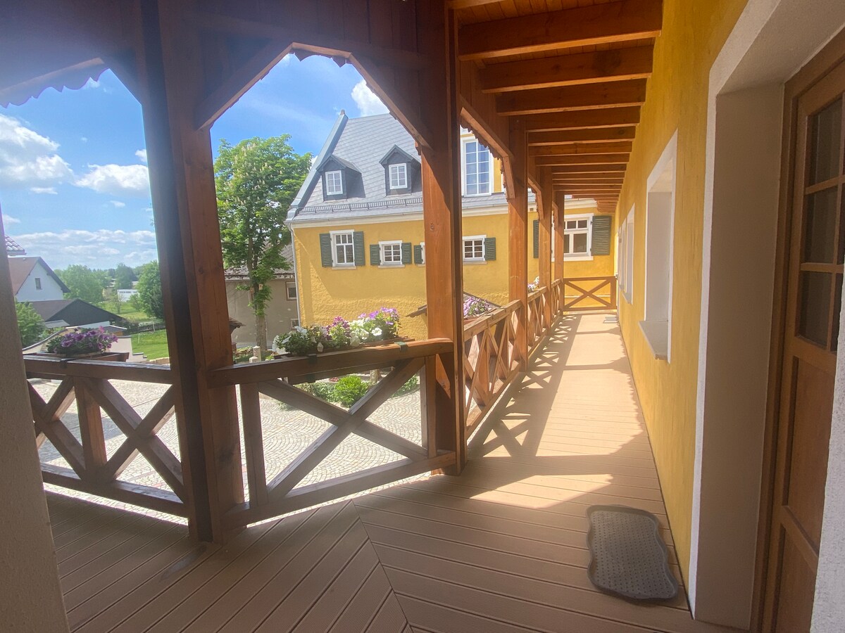 Room + bathroom and great property in the countryside. Ore Mountains married couple with small dog welcomes their guests for a stay in beautiful Schneeberg.