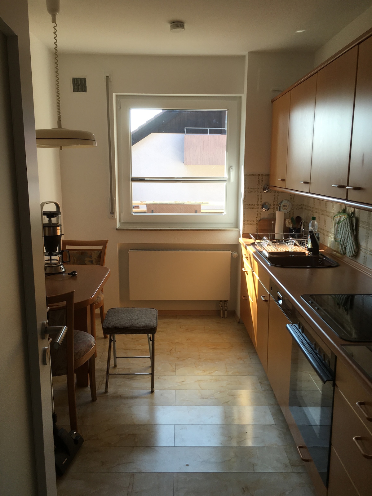 The apartment is located in a semi-elevated location of Esslingen with a fantastic view of the city. The quiet location on a cul-de-sac guarantees relaxed living. The cozy living-dining room invites you to linger and the spacious bedroom guarantees soothing relaxation. The kitchen is modern and fully equipped and the bathroom is bright and modern. Two small terraces are available and invite you to a sundowner at the end of the day.