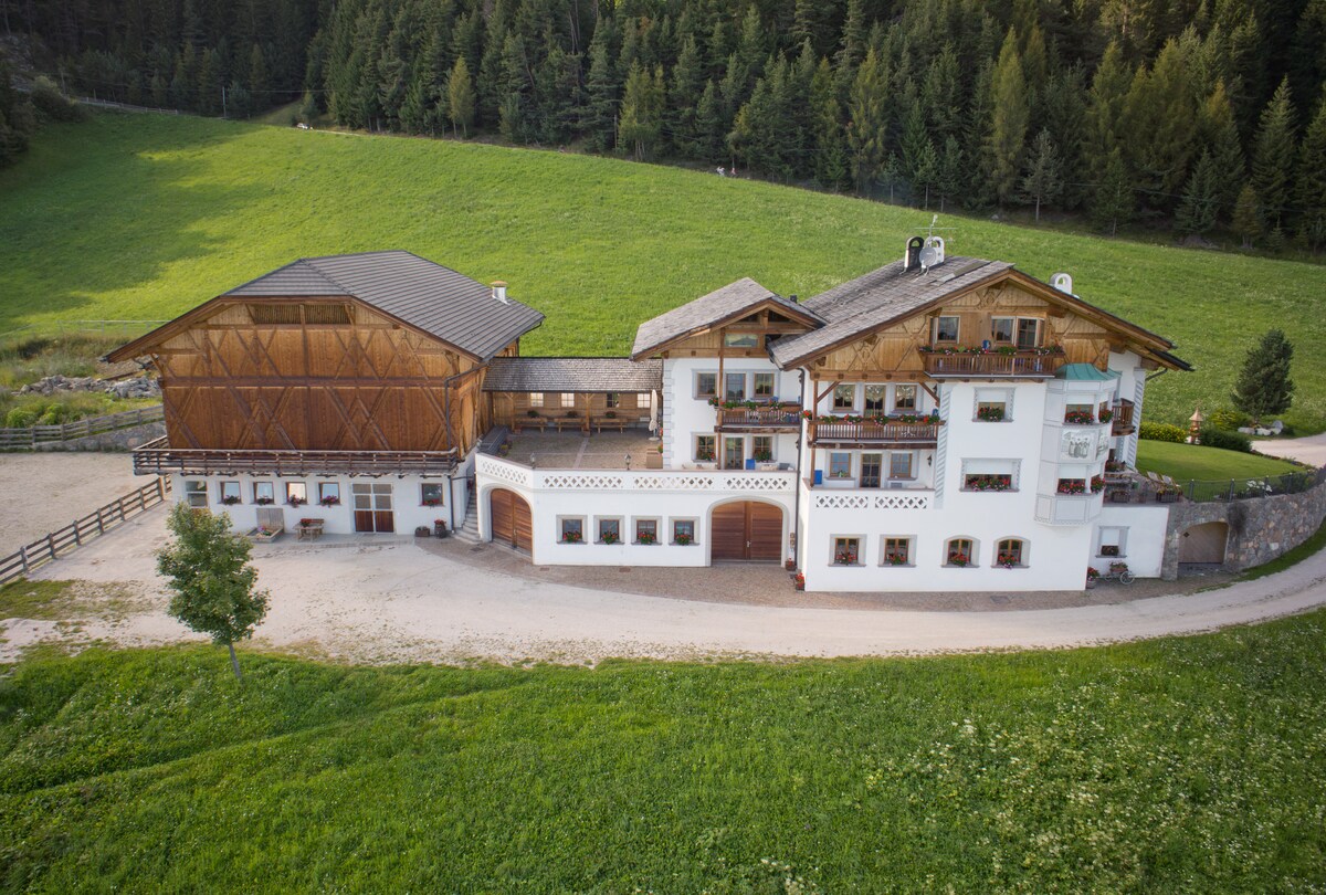 Our house is located in Lajen-Ried, at 780 meters above sea level, on the sunny southern slope at the entrance to the Val Gardena - the ideal starting point for your skiing and hiking vacation. Lajen-Ried is a scattered settlement surrounded by fields, meadows and forests. The immediate surroundings are a dream setting for hikers and cyclists. Enjoy your vacation in nature, walking, mushrooming or cycling in the forest. We are located in the heart of South Tyrol and are very centrally located.
