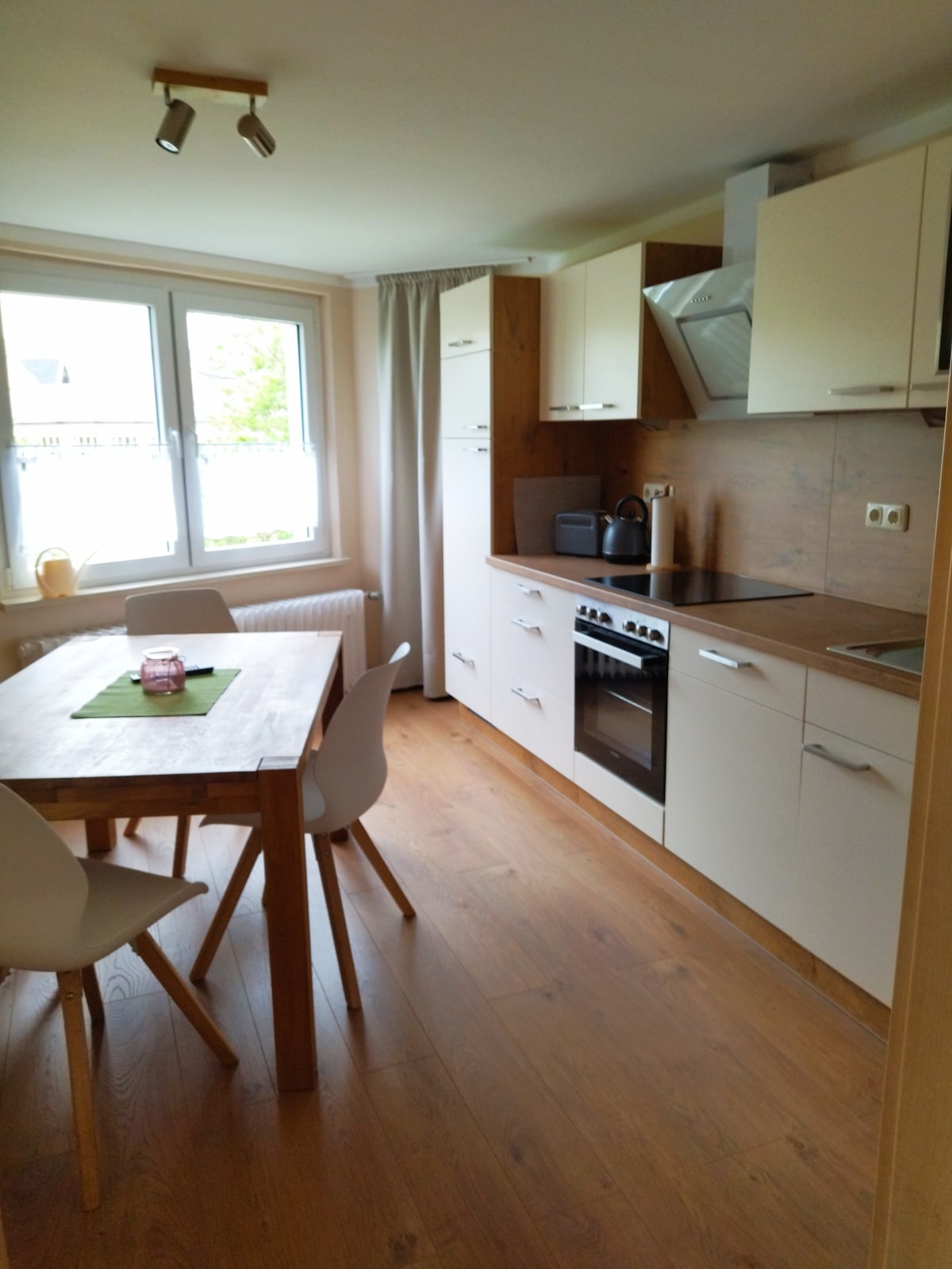 Our 91 m² apartment, located directly on the Unstrut bike trail, offers relaxation for the whole family. In addition to a fully equipped kitchen, our guests also enjoy the large full bathroom with shower and bathtub. Meals also taste particularly good on the private balcony. In the open kitchen-living room, day trips to the surrounding sights can be planned perfectly! We look forward to your visit!