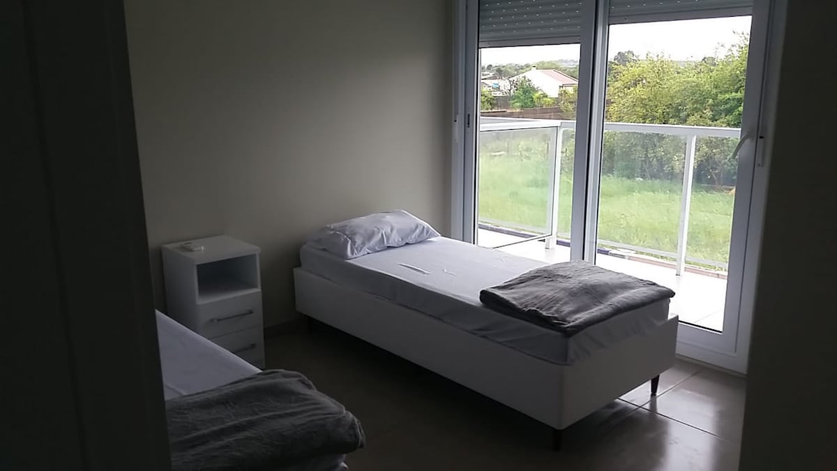 Aproveite a paisagem encantadora deste lugar romântico em meio à natureza. Em frente ao Aeroporto e a 50km da fronteira com o Uruguai. Próxima a Faculdade Ideau. Hospeda até 4 pessoas com custo imbatível. cozinha completa. Fica a 4km do centro da cidade.