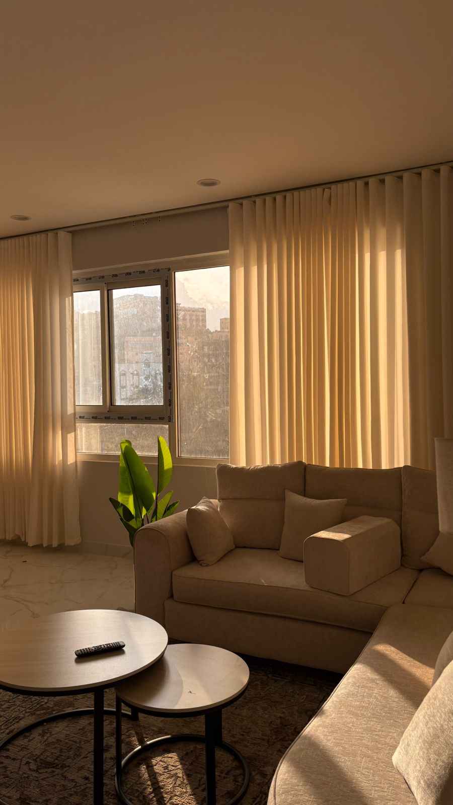 • A beautiful panoramic view of the city • Modern design and luxurious furniture • Smart TV with streaming services • Hidden lighting adds an atmosphere of comfort and relaxation • Comfortable seating and luxurious carpets • Air conditioner • Centrally located close to restaurants, cafes and markets Location: Downtown Al-Baha – Quiet neighborhood and strategic location Parking is available near the location Suitable for daily or weekly stays