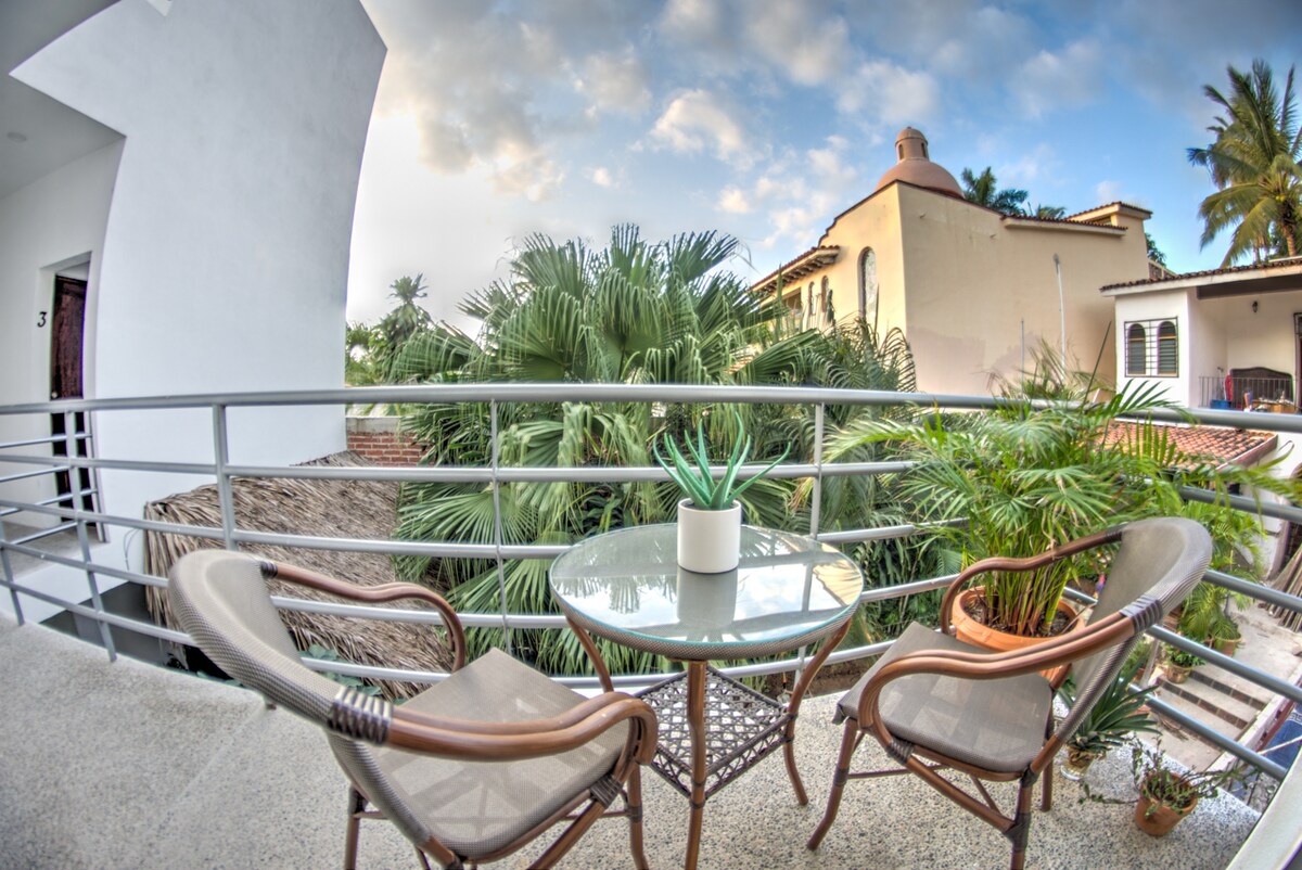 Charming studio with a queen-size bed in a boutique property (only 8 condos) in the most sought-after neighborhood of Bucerias. Walk 2 blocks to the beach, cool off in the HEATED pool, or enjoy the sunset from the rooftop palapa. Being in the heart of town means you can walk to the best restaurants, cafes, & art galleries this quaint beach town has to offer. Whether you stay for a week or a month, it’s perfect for experiencing the best-kept secret in the bay.