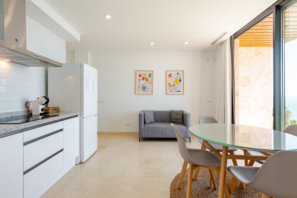 Luxury coastal living. This is The Edge, a spectacular beachfront complex in Estepona. In this spacious modern apartment with 2 terraces, you will enjoy views from every room. Three bedrooms, bright living room with kitchen and plenty of space to provide luxury holiday for up to 6 guests. The biggest plus of this complex is its own private beach access with bar and restaurant, landscaped gardens, three swimming pools, spa, gym and paddle courts in perfect harmony with the sea.