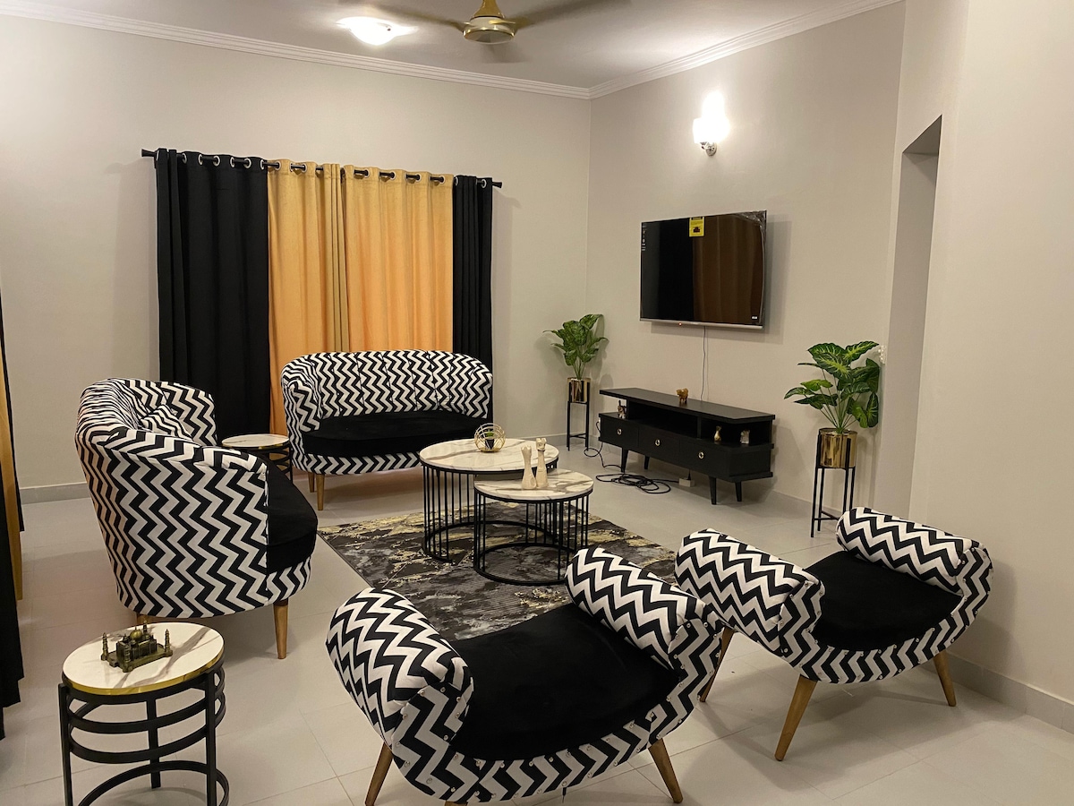 “Welcome to your cosy retreat in Bahria Town Karachi” An aesthetic place to stay for couples ,friends and family Free Services: Netflix Amazon Refreshment Kitchen Utilities Electricity ,gas,water 24/7 available Extra services with extra charges: 1:Maid 2:Car with driver 3:Home chef 4:Servant for outside works Other things to note please be mindful of noise levels and refrain from playing music loudly to ensure a peaceful enviroment for everyone.Enjoy your stay.