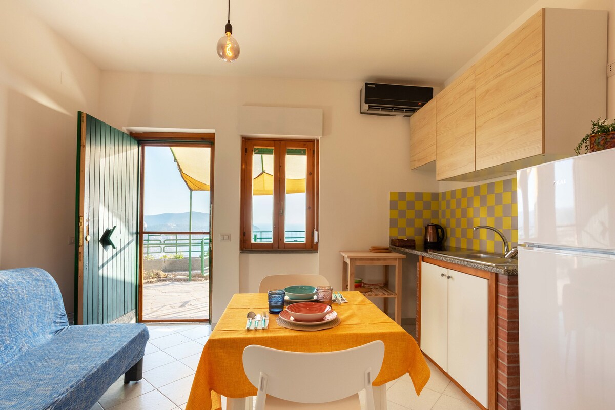 Well furnished apartment complete with all comforts, unique environment and double bed “queen size” for 2 people, large kitchen area complete with all appliances, refined bathroom with local ceramic tiles, wifi, air conditioning. Large terrace with sun chairs, table with chairs, spectacular views of the coast and the sea, relaxation area with armchairs and barbecue and outdoor shower. Free parking.