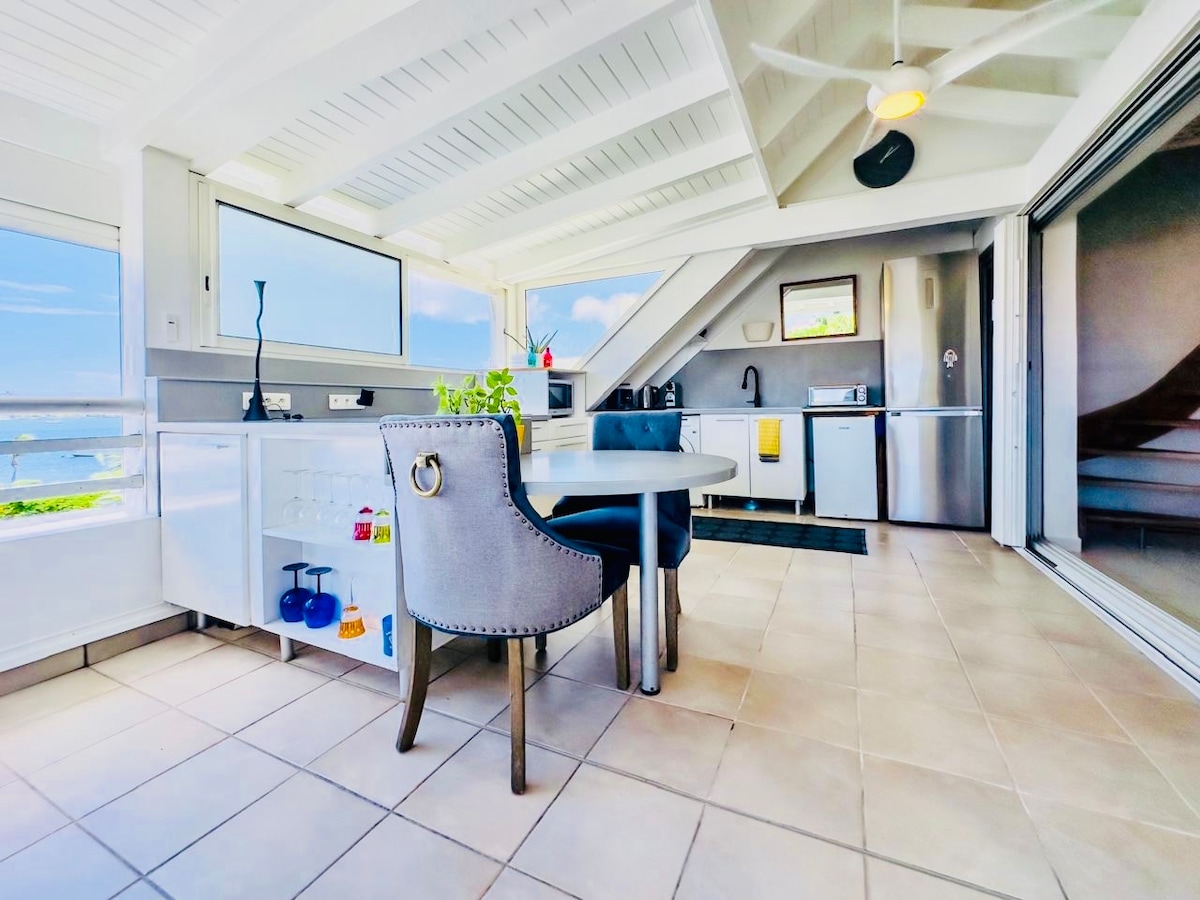 Baie Nettlé is located on a sandbar between the Caribbean Sea and the lagoon, it is the ideal area to enjoy your vacation by the water. Come and admire this magnificent view of coconut trees and white sand at every moment, enjoy this apartment with its large private terrace directly on the lagoon beach that will offer you spectacular sunsets.
