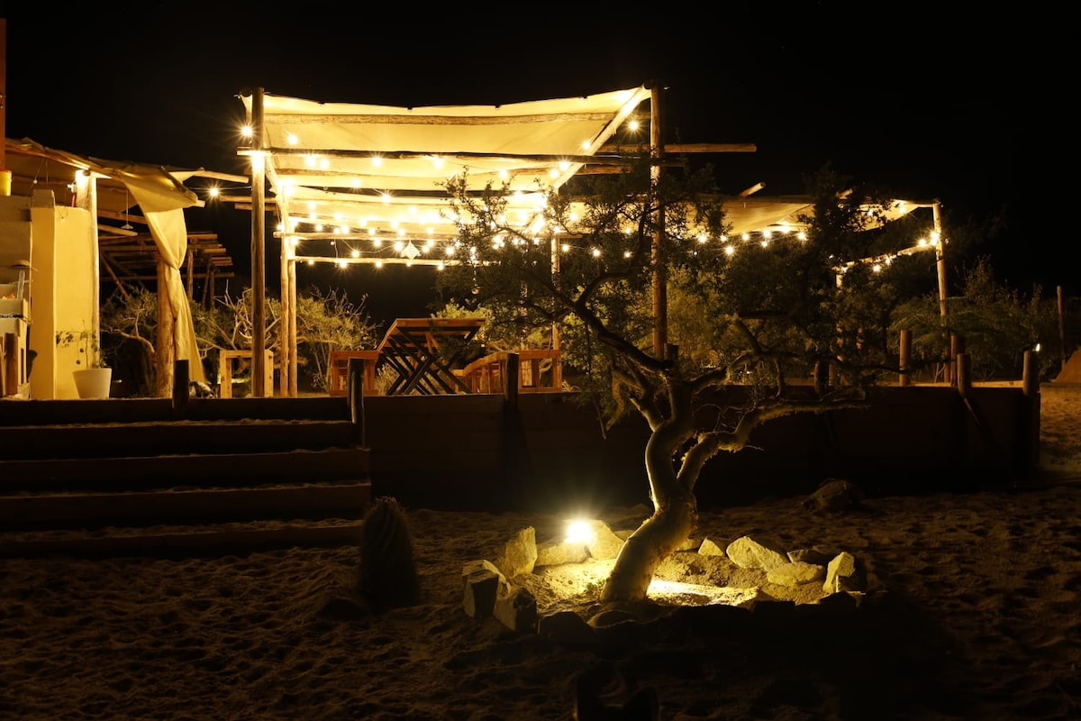 Imagine waking up in the heart of the Baja desert. Spend the night in a glamping tent with a double mattress and a private outdoor bathroom. Enjoy a hot shower under the stars, cook in the outdoor kitchen, or let us cook for you! Work surrounded by peace, cacti and silence. It's not just a place to sleep, it's a space to reconnect, take a deep breath and remember how simple and beautiful life is. Baja awaits you!