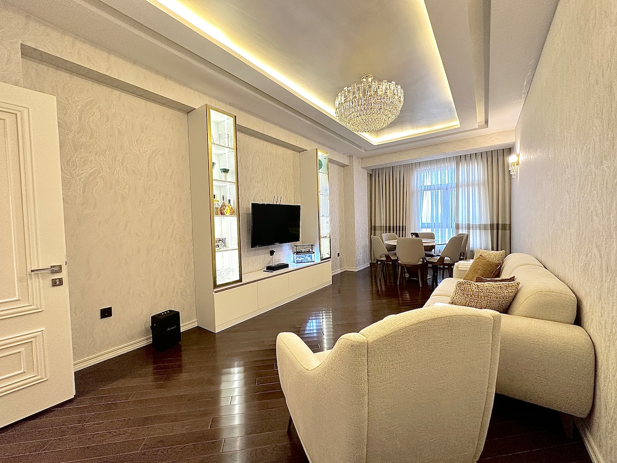This 240-square-meter apartment offers luxurious living in the heart of the city. With three bedrooms and one living room, it is perfect for families or those who enjoy entertaining. Located in a prime central location, you'll be just steps away from Port Baku Mall, Crescent Mall, the Absheron Marriott Hotel, restaurants and shops.