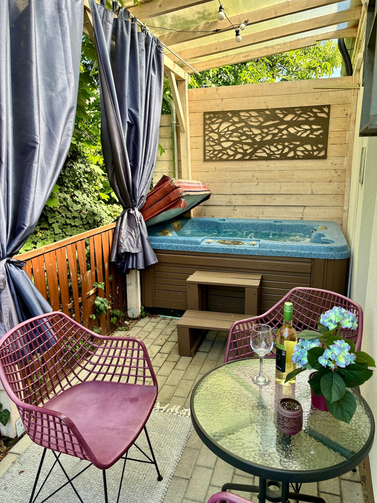 A modern and quiet oasis - which is yours for a few days! From autumn to spring, you can rent the entire house with all the extras and wellness services, so you can relax comfortably for up to 6 without disturbing your peace of mind. There's a private courtyard, a private outdoor hot tub, and a mini-sauna, and two spacious apartments where you can recharge in the cooler months. NTAK Registration Number: MA22053444 Listing type: Private accommodation