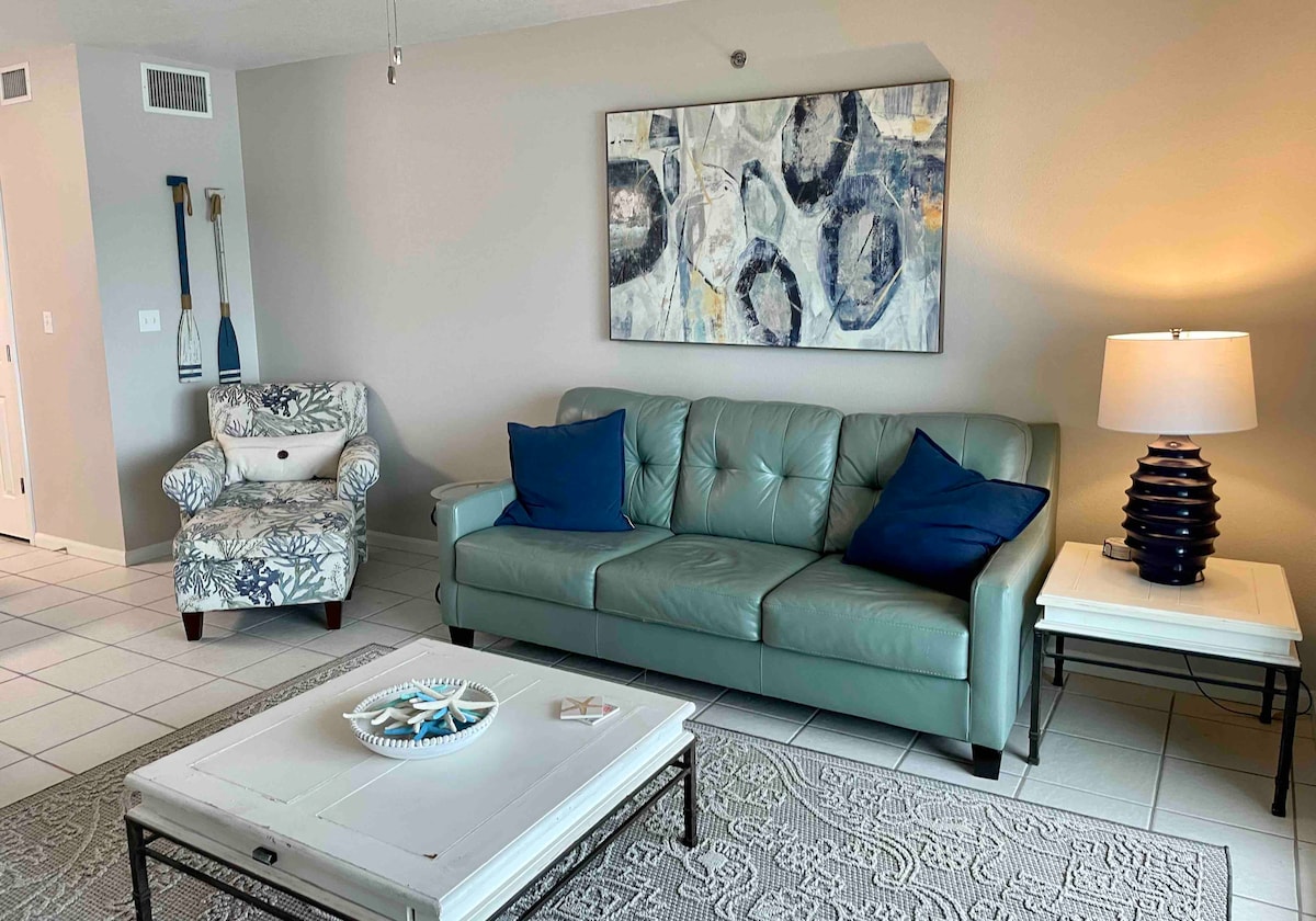 In the heart of Orange Beach is this luxury condo with breathing taking views of the sugar white beaches & emerald waters. From the balcony you can watch the majestic sunrise or marvel at the dolphins playing. When a break from the beach is needed you can enjoy the many amenities onsite. Orange Beach offers activities for the whole family including restaurants & shopping. After a fun day prepare to make dinner in the well appointed kitchen, relax with the cheerful decor & comfortable sitting.
