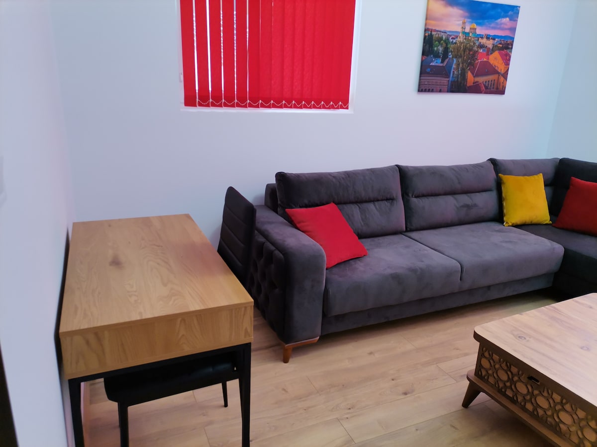 Lovely, quiet, and cozy place. Apartment located in the centre of the city but also in the forest. A smart control of the equipment for as much comfort as possible. This place can guarantee your desired vacation. It has two private rooms, a bathroom, a terrace, and a small yard. The kitchen has all the essentials for both short and long-term stays. An eco path leads to some of the most beautiful spots in the city.