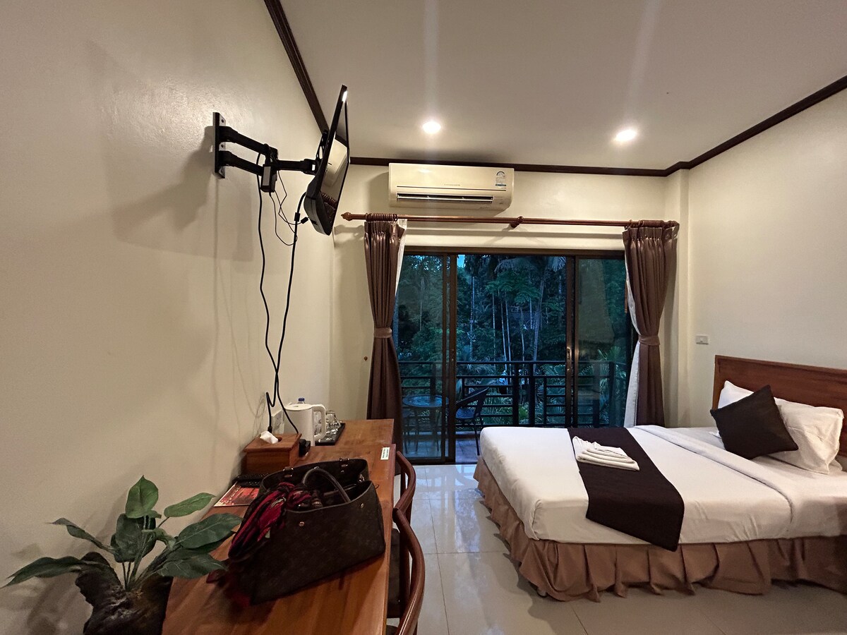We are Centrally Located on The Main Road where Bars & Restuarant Open. The Scenic Forest View is all around. Klong Sok Cannel is walking Distance. Bus Stop is 550 Meters Away. Mountain View can be seen from Main Road. Bamboo Rafting is 600-800 THB from Front Desk along with Elephant & Walking Tour
