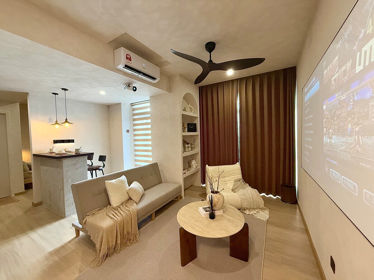 (1+1 BR & 1 bathroom) Contemporary modern and cozy condo in the heart of JB city centre. Suitable for 4pax family, friends and business group. **5mins to CIQ, City Square, KSL, Pelangi, and Larkin **8mins to Mid Valley Southkey, Larkin Sentral and Sentosa **15 mins drive to Paradigm mall, Sutera, Skudai and Mount Austin ✔ 4K SmartTV ✔ High Speed Wi-Fi, working tables with extension plug ✔ Washer ✔ Airconds in every rooms. ✔ Atari console, Mahjong, and Board games. ✔ FREE parking for 1 car