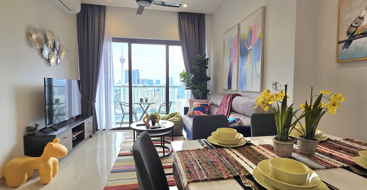 Why stay at Contemporary Suite at Lucentia Residence - the best views of KL - beautifully decorated with a fun spirit - centrally located - near public trans - fast wifi - 2 TVs with Netflix, Apple TV, Prime Video - 2 gorgeous pools - family friendly with baby crib & high chair - gym, pool table,BBQ pits, piano - garage parking - sleeps 3 max 5 - LalaPort Shopping Mall & the WOW entertainment street are attached - grocery, drug store, and many restaurants are attached - movie theatre GSC