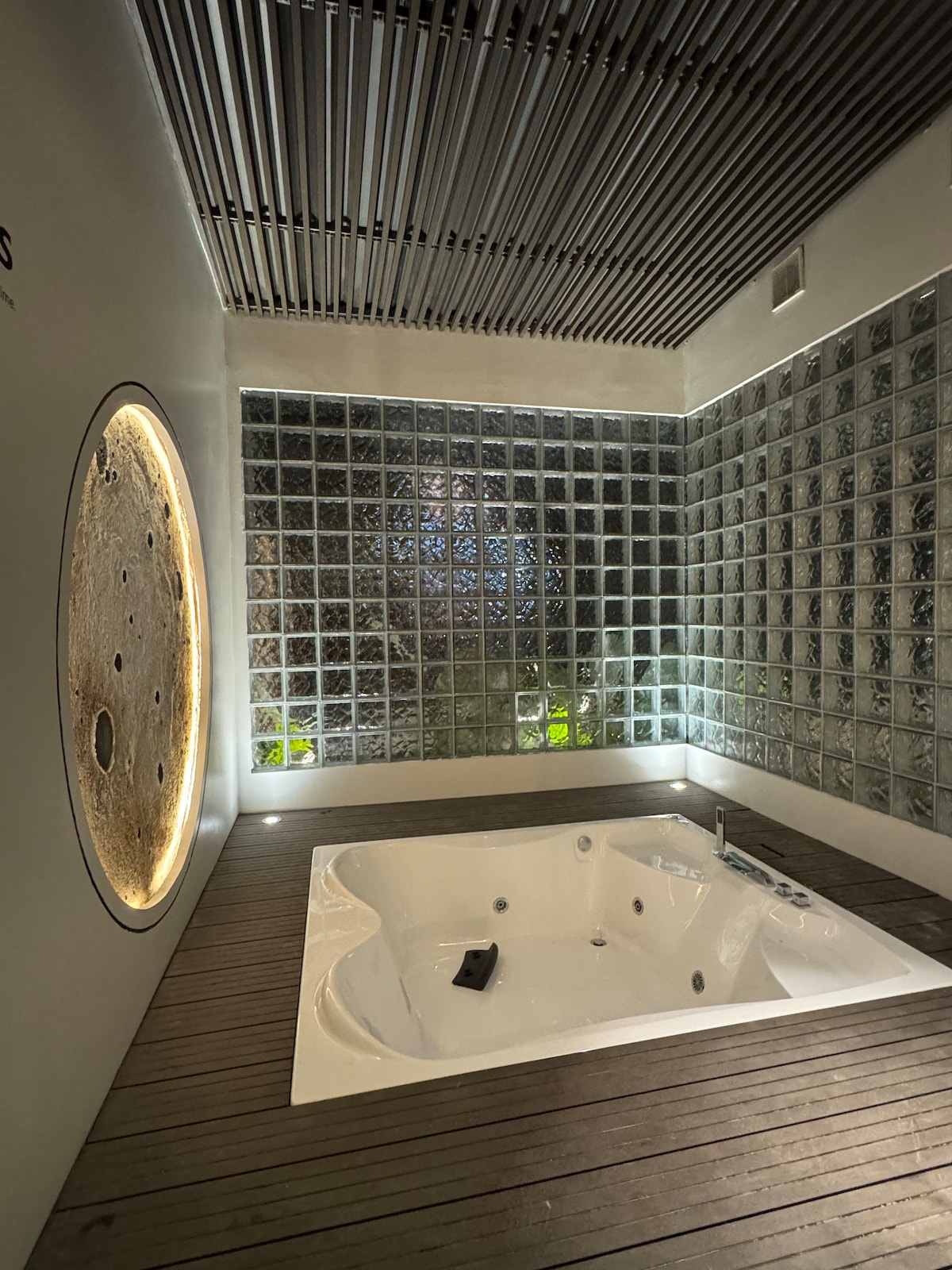 Have fun with the whole family at our stylish place. It’s a heated natural water from the hill (not a hot spring). Open from the living room, your children will love playing in this hot tub 💙 1. TIDAK available untuk pasangan yang BELUM menikah. 2. Setelah jam 10 malam kurangi volume suara dikarenakan area pemukiman. 3. Jam operasional Air Panas di kolam dari jam 6 pagi - 10 malam. 4. NO ALCOHOL, DRUGS, PORN & PARTY. 5. Security patroli 24 jam.