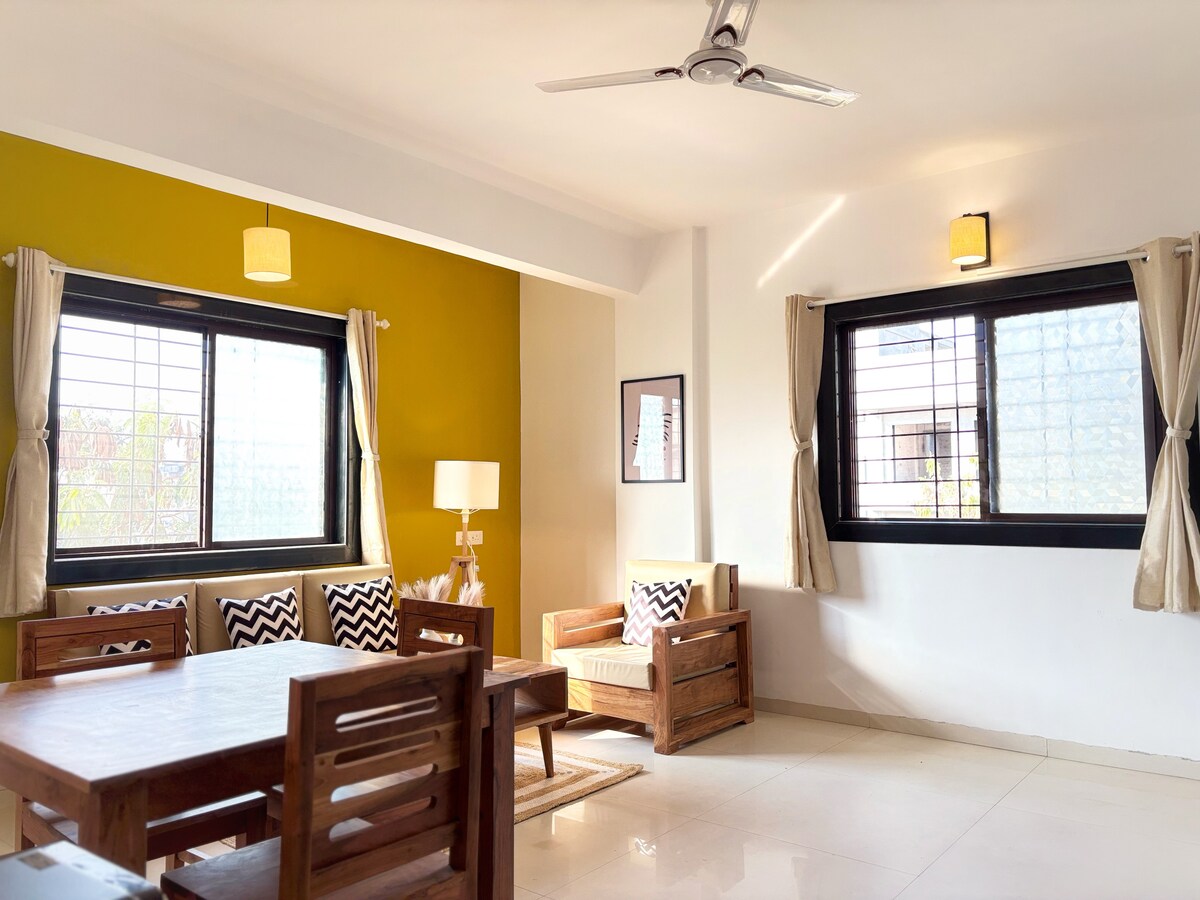Unwind and enjoy your time in this serene and chic environment. A well-linked accommodation option. Amenities: Air conditioned Fully automatic washing machine High-speed WiFi 8-hour power backup Fully equipped kitchen Refrigerator Dining table RO water Reserved Car parking Serviced by Ola , Uber Swiggy, Zomato etc * complementary house keeping / cleaning twice a week *homemade food is available at extra charges *Entire flat is available to guest without sharing *couple friendly