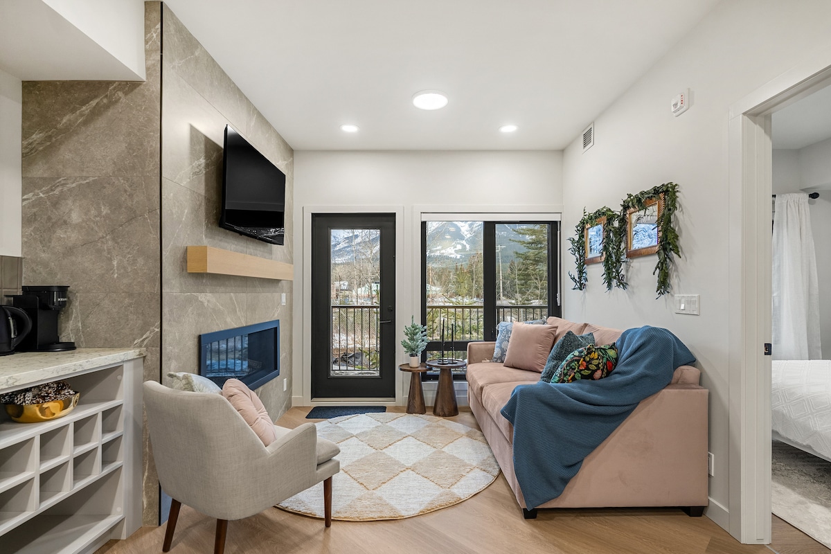 Welcome to this stunning, 1 bed 1 bath property, located in the heart of Canmore, Alberta. Surrounded by the best mountain views in Canmore, this property offers breathtaking views of the Three Sisters, Mount Lawrence Grassi, and the whole Rundle mountain chain. After a long day, come home to soak in one of the outdoor hot tubs, relax in front of the electric fireplace or sit on our sunny balcony and enjoy the view.