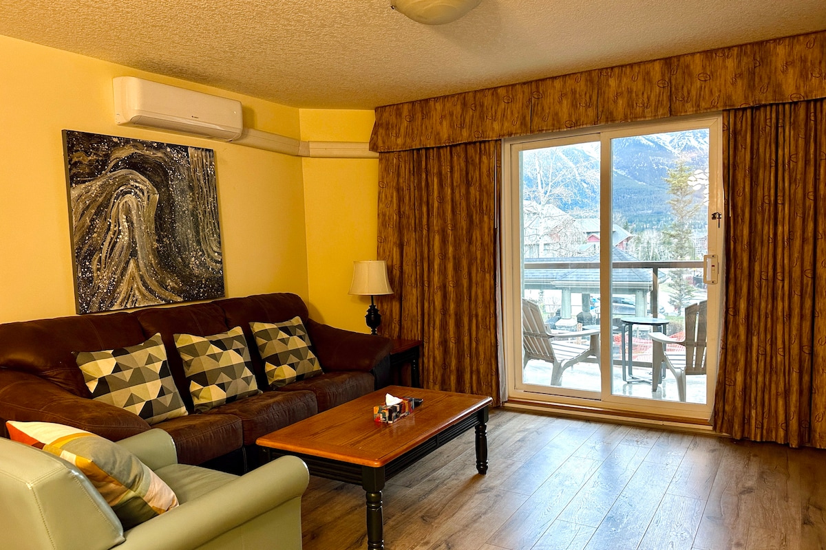 Enjoy the mountain view from the living room in this 2nd floor corner unit! This spacious, clean, and cozy condo welcome you to an unforgettable mountain getaway. This 1BR/1BA suite is located in Canmore, within 10 minutes walking distance or a few minutes drive to downtown Canmore. As a ski base, you can enjoy any one of the four nearby ski resorts: Norquay, Nakiska, Sunshine, Lake Louise. Shaw 75 internet makes WFH enjoyable. A brand new split A/C was installed for a cool 2024 summer!