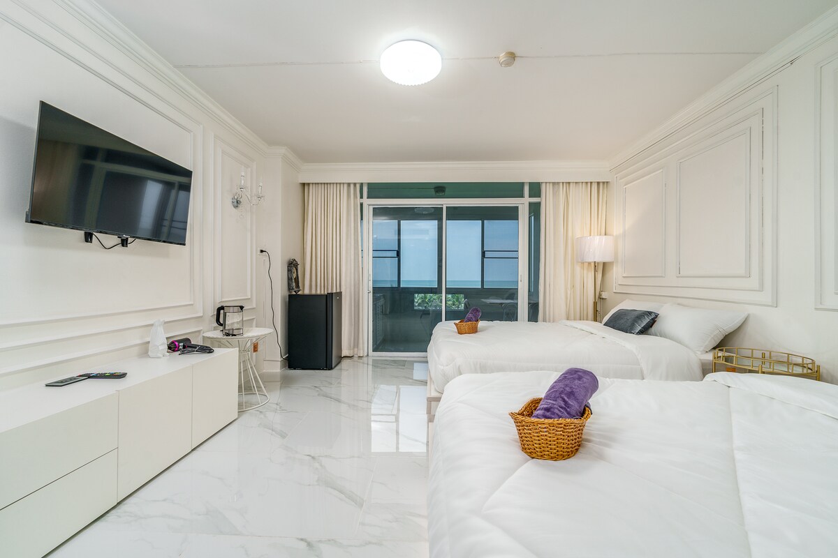 Experience the ultimate beachfront escape at our stylish 54 sqm “Golden Sunsets” studio, just a 1 minute walk from Jomtien Beach and the new 5 star Marriott Hotel. Enjoy modern design, luxury amenities, and a huge 12 sqm balcony with uninterrupted sea views. Perfect for singles and couples seeking comfort, style, and oceanfront tranquility. Check out our other condos in Pattaya listed on Airbnb: airbnb.com/h/oceanparadisef8 airbnb.com/h/seabreezef19