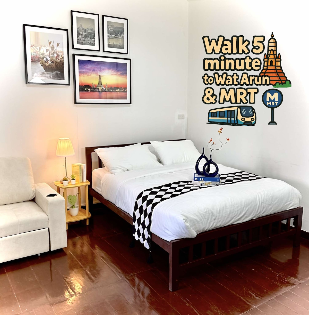 เอนกายผ่อนคลายในที่พักที่อย่างมีสไตล์ เที่ยวได้ทั้งครอบครัวเมื่อเข้าพักในที่พักใจกลางเมือง ผ่อนคลายที่ระเบียงริมน้ำแล้วปล่อยให้ปัญหาละลายหายไปเริ่มเช้าวันใหม่ด้วยกิจกรรมที่รอคุณอยู่ ปั่นจักรยานชมเมือง, เที่ยวสนามมวยราชดำเนินเดินStreet foodเยาวราชและช้อปปิ้งของถูกยามค่ำคืนตลาดสำเพ็งหรืออยากสร้างกิจกรรมกับครอบครัวด้วยการตกปลาที่ระเบียงบ้านเรามีคันเบ็ดให้ ที่พักเราอยู่ใกล้วัดอรุณคุณสามารถเดินเที่ยวได้ตลอดคุณเที่ยวเสร็จกลับมานอนบ้านเย็นสบาย