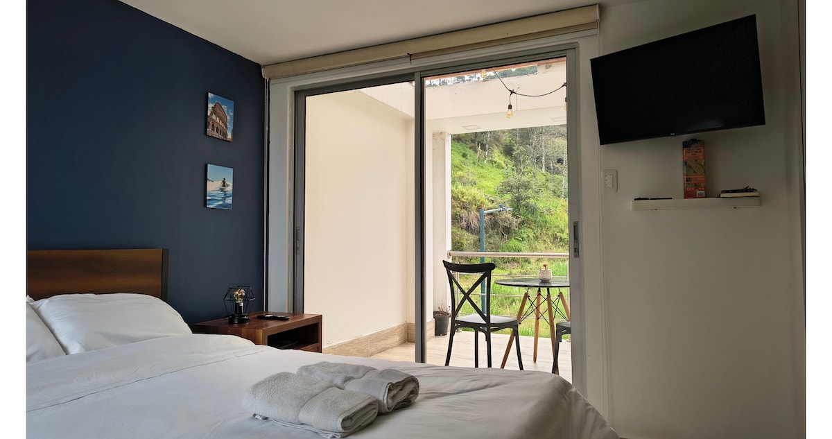 "Discover our Ecuadorian minimalist Suite! Immerse yourself in luxury and nature with extraordinary landscapes and serene decor. Equipped with kitchen utensils, a 43" TV with Netflix, and a high-quality mattress for an unparalleled night's rest. Experience hospitality excellence in a sophisticated and welcoming environment. We await you for a unique experience!"
