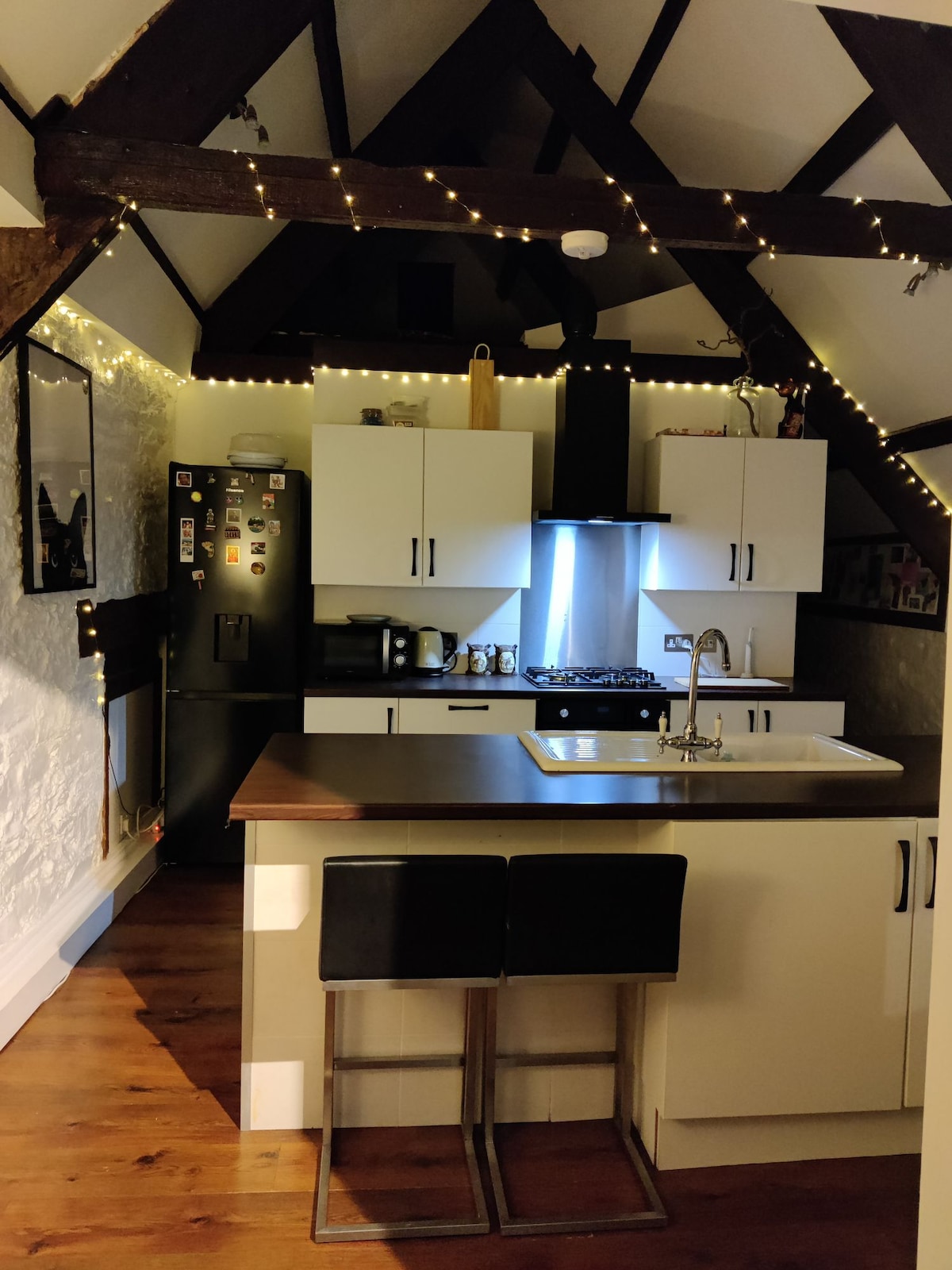 Wonderfully located for exploring the South Hams, the cottage is one and half miles from South Milton Sands and the South West coastal path. The gorgeous harbour town of Salcombe is less than five miles away. This cosy cottage is the ideal bolt hole for a couple with up to two children. Two bedrooms; one double bed room and one bedroom with two single beds. Bathroom has a bath with a shower over it. Open plan kitchen/living/dining. Fully working wood burning stove.