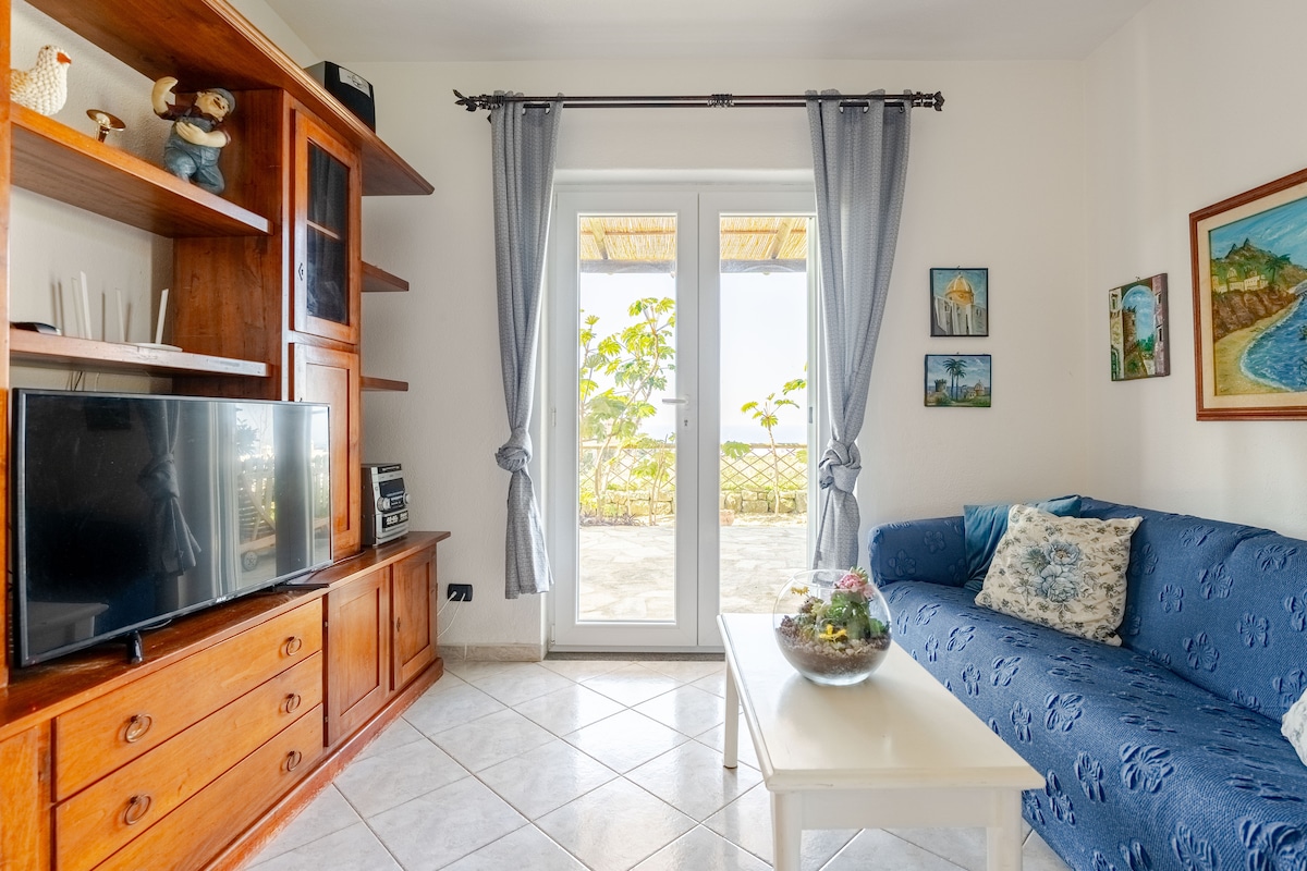 The apartment (with independent entrance) has a kitchen, on the beach of Cava Grado (Sant Angelo) with a panoramic terrace overlooking the Sant Angelo tower (one of the most beautiful villages in the world). Just a 10-minute walk from the square. Bus stop just 5 minutes away (as shown in the photo).