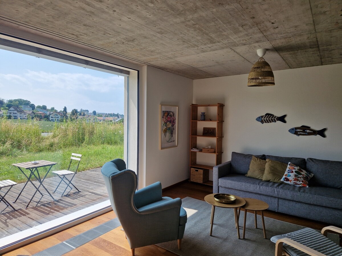 Are you looking for a nice, quiet spot in nature where you and your loved one lack nothing? Then book your luxury apartment with us in the terrace house with outdoor whirlpool under an open roof. Parties of any kind are not allowed due to the exclusive furniture and desired tranquility. Late check-ins are possible upon prior arrangement and cost 20 CHF.