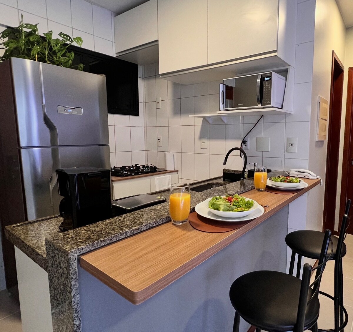 We design every detail for your well-being: Fully-equipped kitchen: Refrigerator Microwave All the utensils, cutlery and pots needed to prepare your meals. Water Filter (Practicality and health guaranteed!) Guaranteed Comfort: Comfortable, high-quality bed. Clean, soft towels and bed linens. TV for your moments of rest. Air conditioning. Well located, ideal for executives, COP30 participants and travelers.