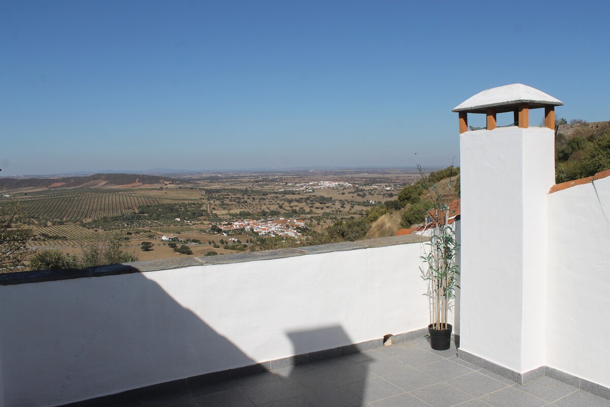 Reg.Turismus: TR-BA-00110 4 bedroom house with fireplace, barbecue, jacuzzi, two valladas pools, soccer court, basketball, ping pong, orchard, ecological chickens and horse pit. Ceiling fans throughout the entire house. Electric charging station on the property. Free. We are pet friendly. Lots of peace and quiet. Awesome views. From the porch, you can see many villages in the region, pine forest, chestnut trees, olive trees, fig trees and oaks. 45 Km from Seville or Mérida