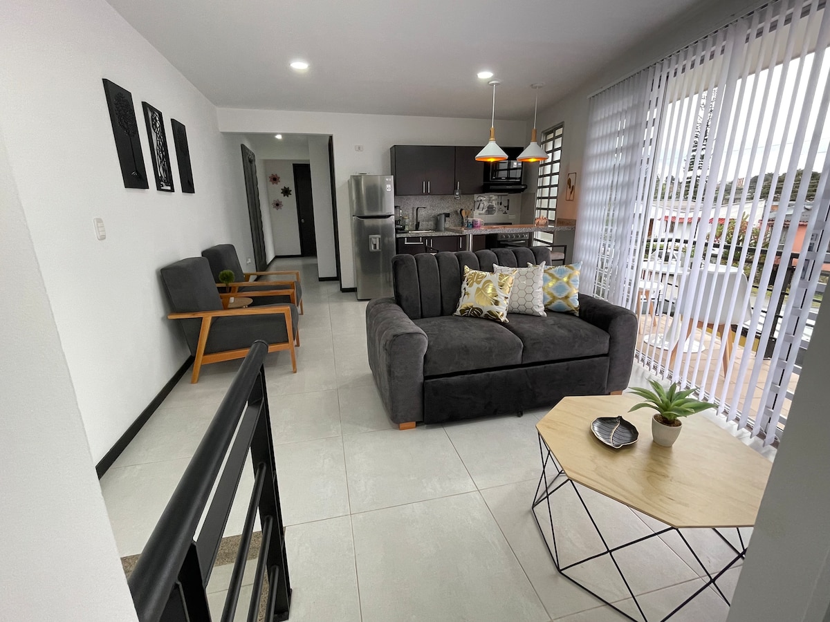 Enjoy luxury and comfort in northern Quindío in a modern, fully furnished duplex. In Circasia, just 2 blocks from the iconic viewpoint and central park—the ideal base to relax and explore. Only 11 km from Salento and the Cocora Valley, and 30 minutes from Parque del Café, Filandia, and PANACA. Private parking for safety and convenience. The perfect location to see the entire Coffee Region and enjoy a vibrant dining scene in Circasia.