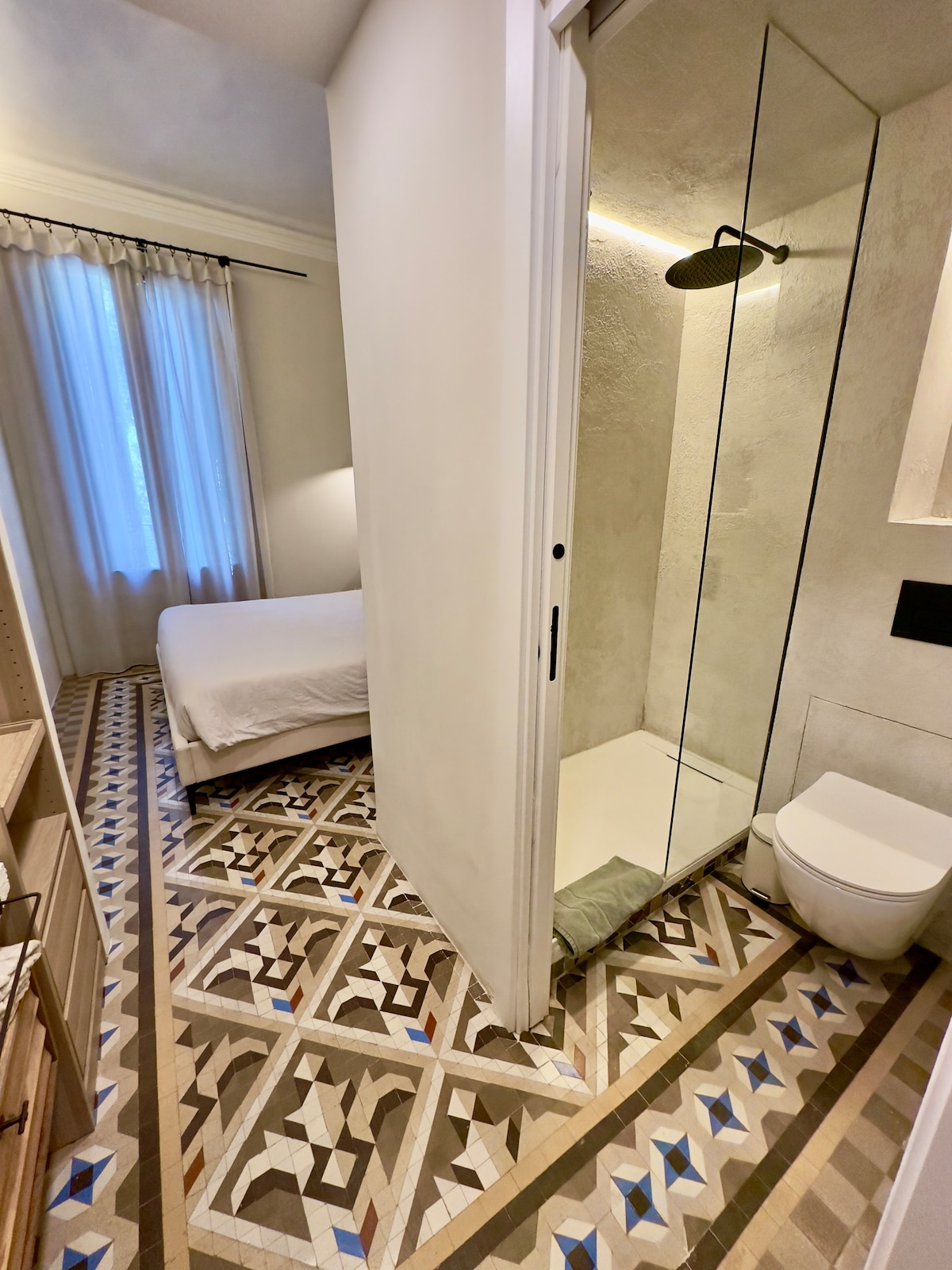 I want to welcome you to one of my new Suites in the center of Barcelona. Around 40 square meters, perfect for couples and solo travelers looking for a unique experience in the most authentic Barcelona, surrounded by the best shops, restaurants. Tourist spots just a few steps away. Enjoy this wonderful space filled with natural light, with a modern and warm decoration that blends harmoniously with the 3-metre-high ceilings and the recently restored original mosaic floors. No lift available