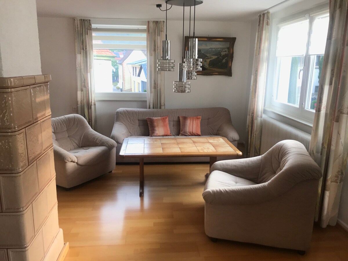 Our apartment "Hans" is located in the middle of the idyllic village of Hausen im Tal in the nature park "Obere Donau". If you want to go hiking or climbing on foot, if you want to get on your bike or simply want time to enjoy, this is the place. The apartment is in the attic. In the house, there are two other apartments, all of which are entered through the common staircase. The apartment has a bedroom with a double bed, a living-dining room with a kitchen that is well equipped.