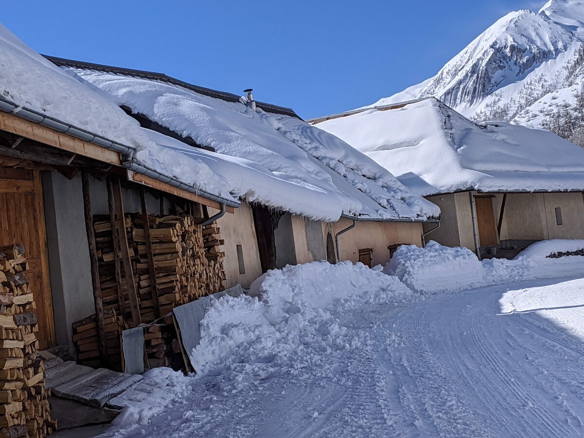 You will find yourself in the beautiful and preserved Ubaye Valley, you will have the small 26 m² cottage to yourself, nestled at the bottom of a cul-de-sac, in the middle of agricultural meadows, with stunning views of the mountains that surround you, quiet without being isolated, you are 1 km from the village of Jausiers