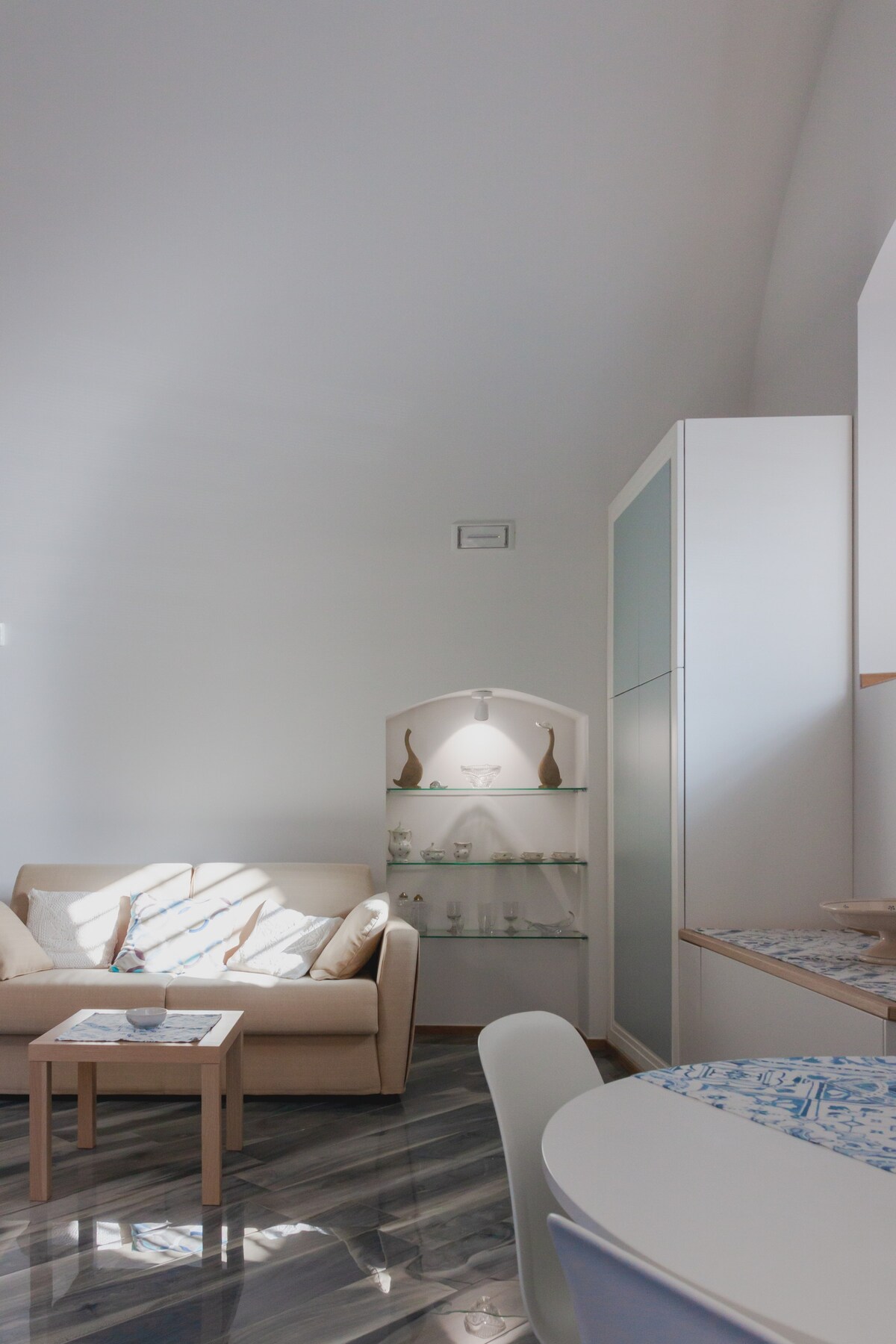 Conservando le sue origini, le fondamenta di questo appartamento si basano su un quartiere, Madonnella, nato agli inizi del XX sec. , pertanto si possono rivivere alcune tradizioni già varcando la soglia di casa. L’arredamento moderno si sposa con alcuni elementi vintage riemersi dal passato per conferire un’atmosfera accogliete in perfetta sintonia con lo stile barese in cui modernità e tradizione convivono in modo esemplare.