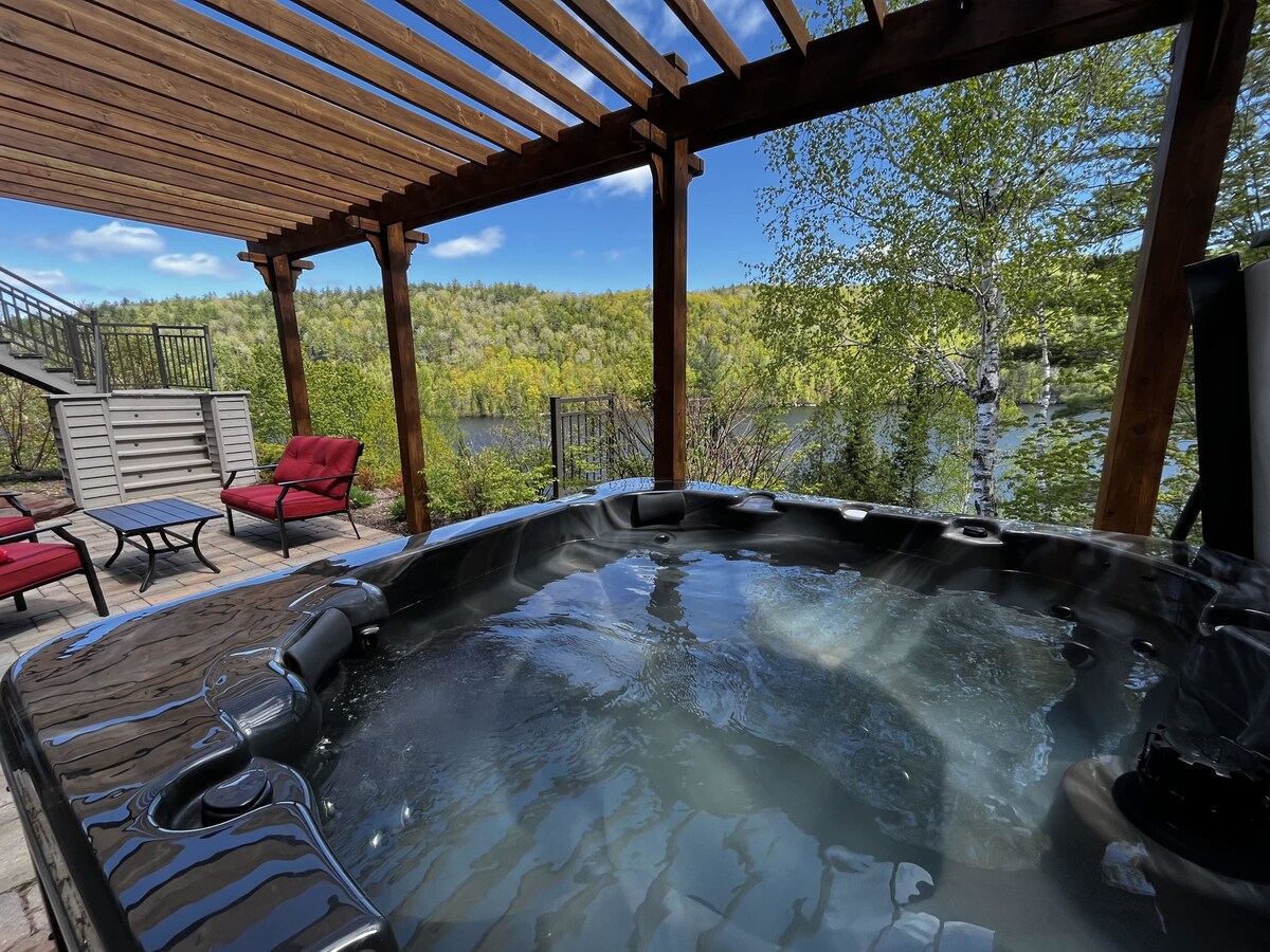 Enjoy this beautiful log cabin located on the waterfront. You won’t be able but to unwind in this rustic and unique location, whether sitting in front of the fireplace or relaxing in the spa. The cottage offers a magnificent view of the mountain side as well as the Pelletier River, which connects with Du Lièvre River. located on Quebec’s federated ATV and snowmobile trails. You’ll be pleased in any season.