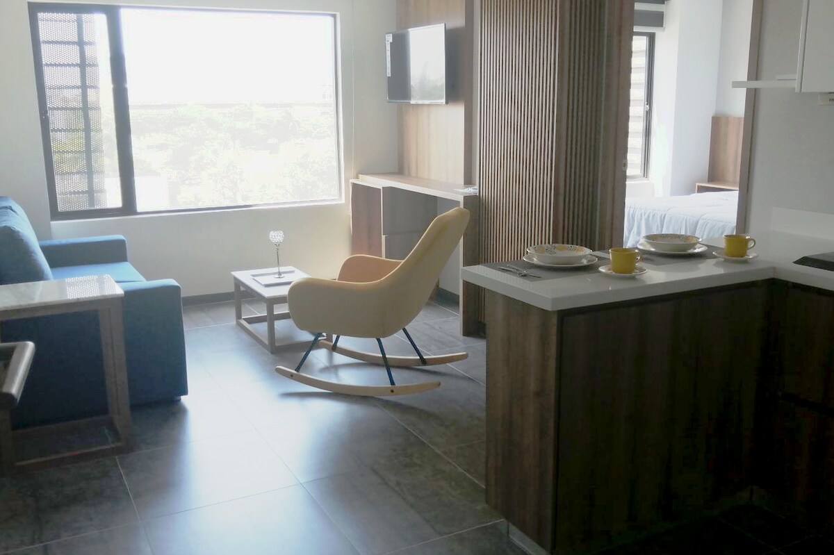 Apartment in exclusive sector of Barranquilla. Located in the Villasantos neighborhood, it is a residential option with access to city artery tracks. The apt is fully furnished and has a smart system that offers guest safety and energy optimization. It has a 12,000 BTU air conditioner that allows it to be cool at all times whenever the guest requires it. The details of the apto will make you fall in love with it and come back every time you visit our city