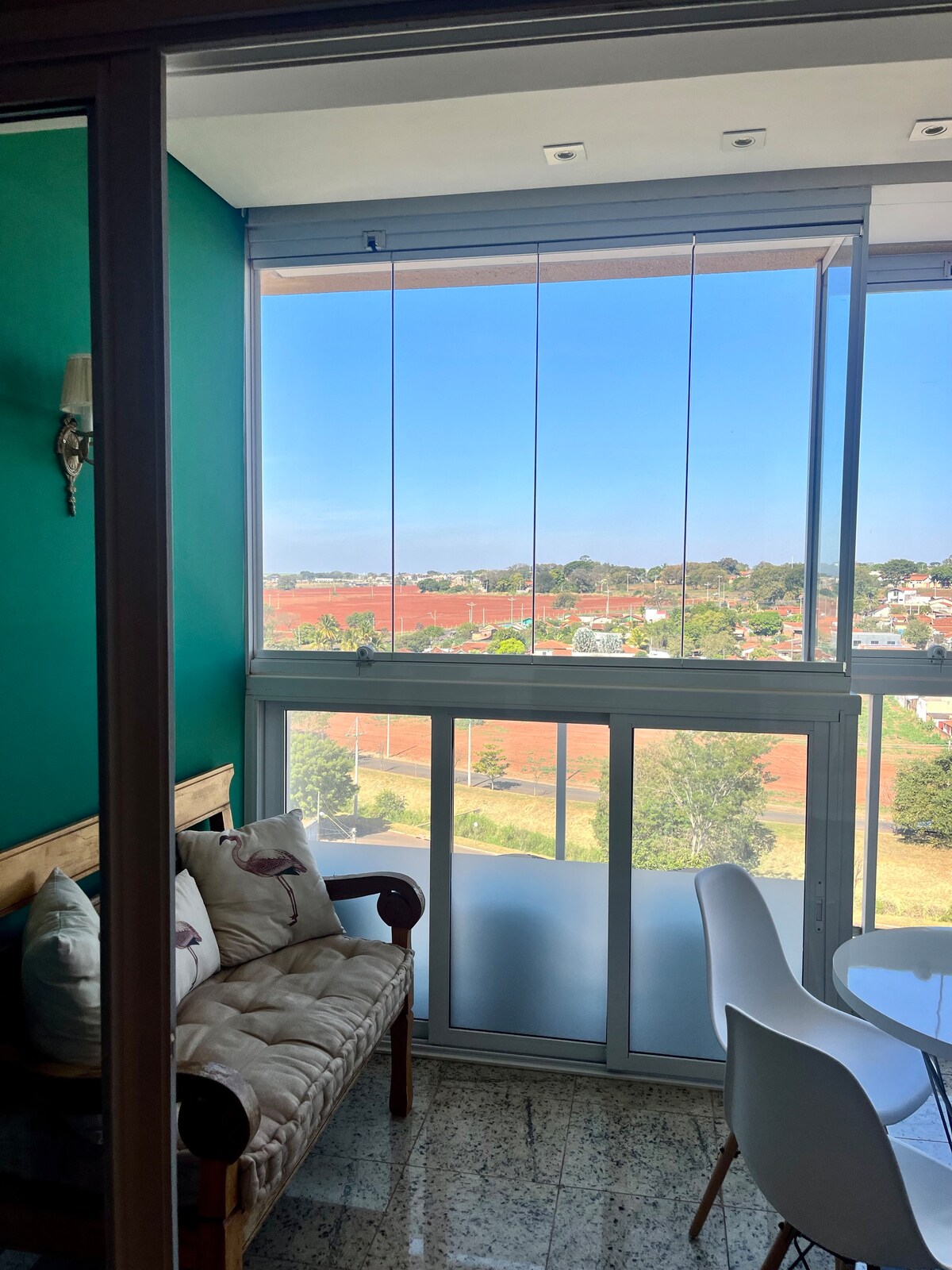 Discover our apartment in Barretos, state of SĂŁo Paulo! With 2 bedrooms and 2 bathrooms, it is perfect for families and friends who want a well-located, safe place, a 2-minute drive from the center and 8 minutes from Hospital de Amor. Quality Wi-Fi, air-conditioning in the living room, en-suite (queen bed) and single bedroom (2 beds), equipped kitchen, laundry (with washer and dryer), large TV in the living room and motorized blackout shutters for your convenience. Book now.