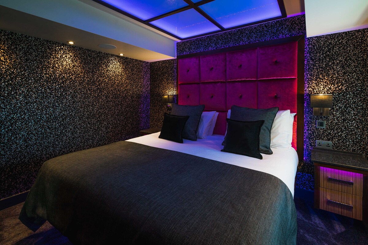 Located on the first floor of our Boutique Church Suite building, simply follow the LED lit staircase until you arrive outside your door. Upon arrival, there’s no need to worry about checking-in, use your digital keypad to unlock your suite instead. Then begin to discover a room designed like no other… A suite so unique, The Fantasy Suite really is something of dreams. Distinctive and beautiful, every detail has been considered and thoroughly thought through during the design of this suite.