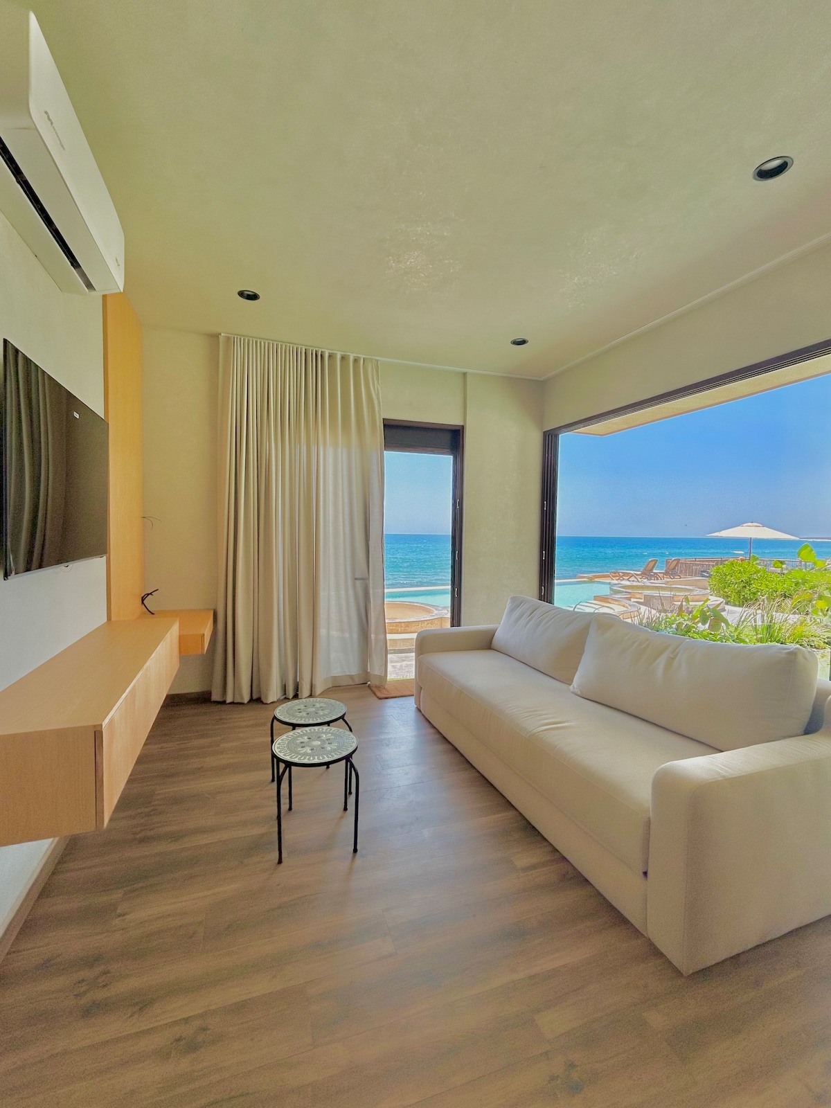Beachfront. It has a stunning view that captivates you from the moment you enter. You immediately feel a sense of peace, tranquility, and wonder. And all from a luxurious apartment where every detail is full of glamor and design.