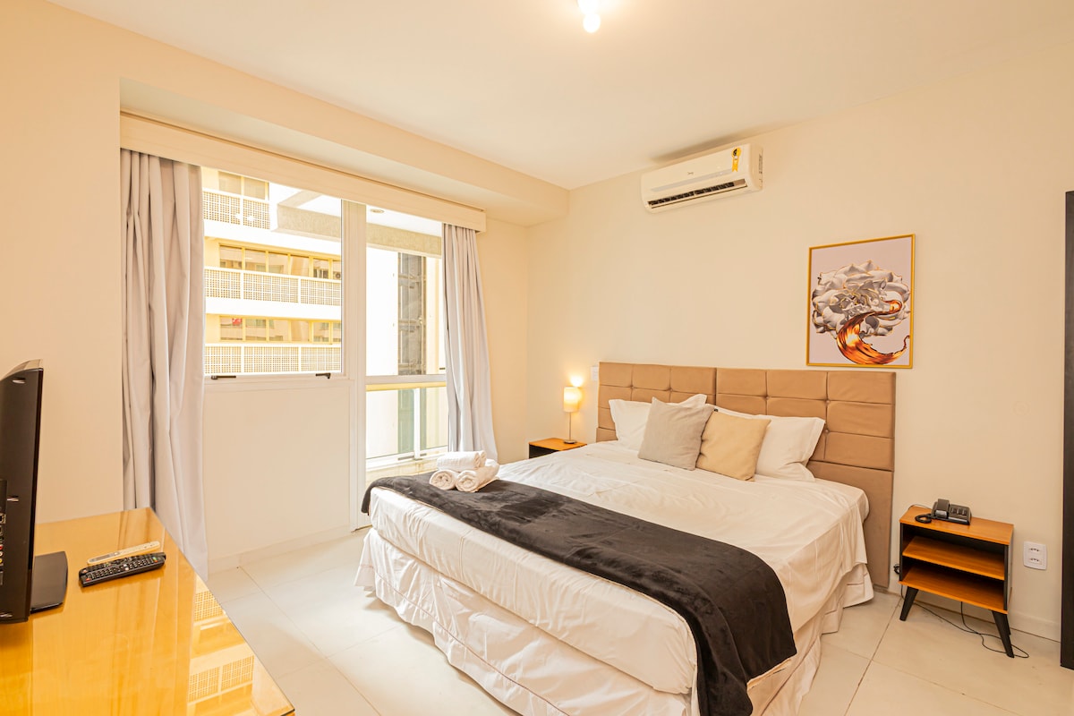 Located in Alameda Grajaú, this apartment offers all the comfort and safety you deserve. With a complete structure and thought out to the smallest details, your stay will be unforgettable Space Highlights: -Parking included - Daily housekeeping -24-hour security entrance - High-speed internet -Air-conditioning and heating in the bedroom and living room -King-size bed for perfect nights of sleep You can also enjoy a beautiful swimming pool, sauna, tennis court, cafeteria and mini-market