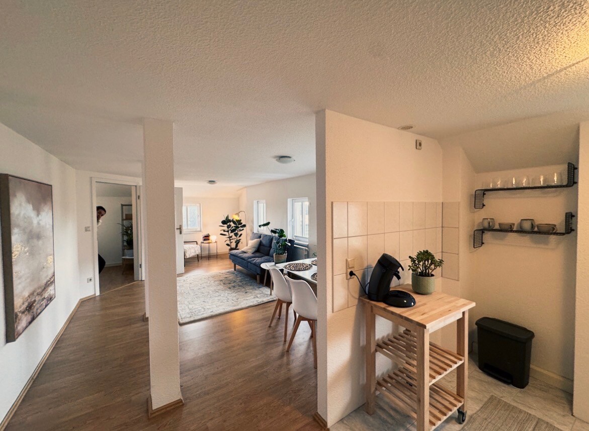 A comfortable and family-friendly apartment with kitchen, bedroom and shower and toilet awaits you. The apartment can accommodate 2 people. In addition, there are 2 extra bed options. A travel cot for infants is available. The rooms are painted with natural colours and the wooden floors are treated with natural wax and are therefore particularly suitable for allergy sufferers. Pets are allowed on request. A large balcony invites you to linger.